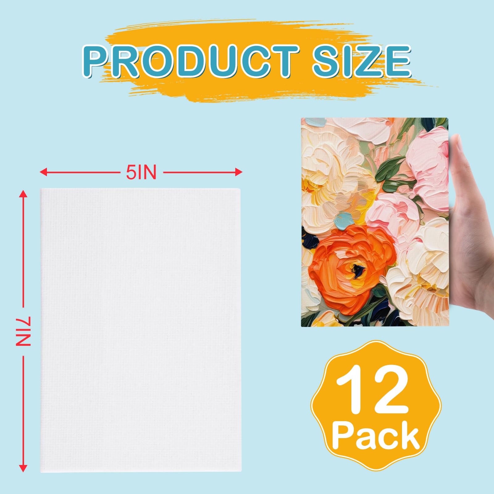 【5x7 Mini Canvas Value Pack】This canvas bulk includes 12 pack 5x7 inches blank canvases for painting, perfect small painting canvas for kids and Professional painter.