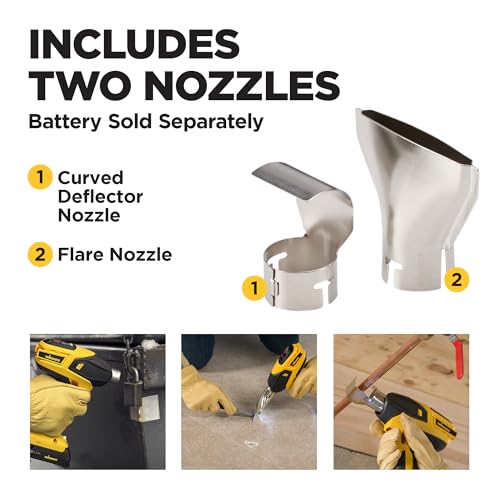 2 NOZZLES: Includes a flare nozzle for wide heat distribution and curved deflector nozzle to easily wrap heat.