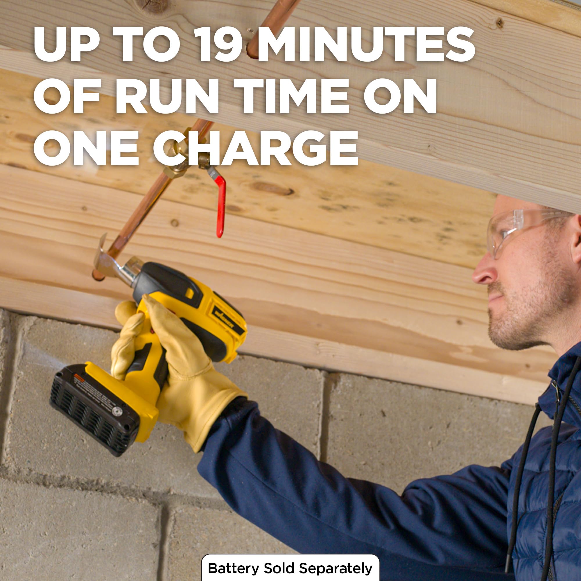 VARIABLE TEMP CORDLESS HEAT GUN: FURNO 550 is a cordless heat gun with 5 temperature settings ranging from 550°F to 1000°F and heats up in 10 seconds