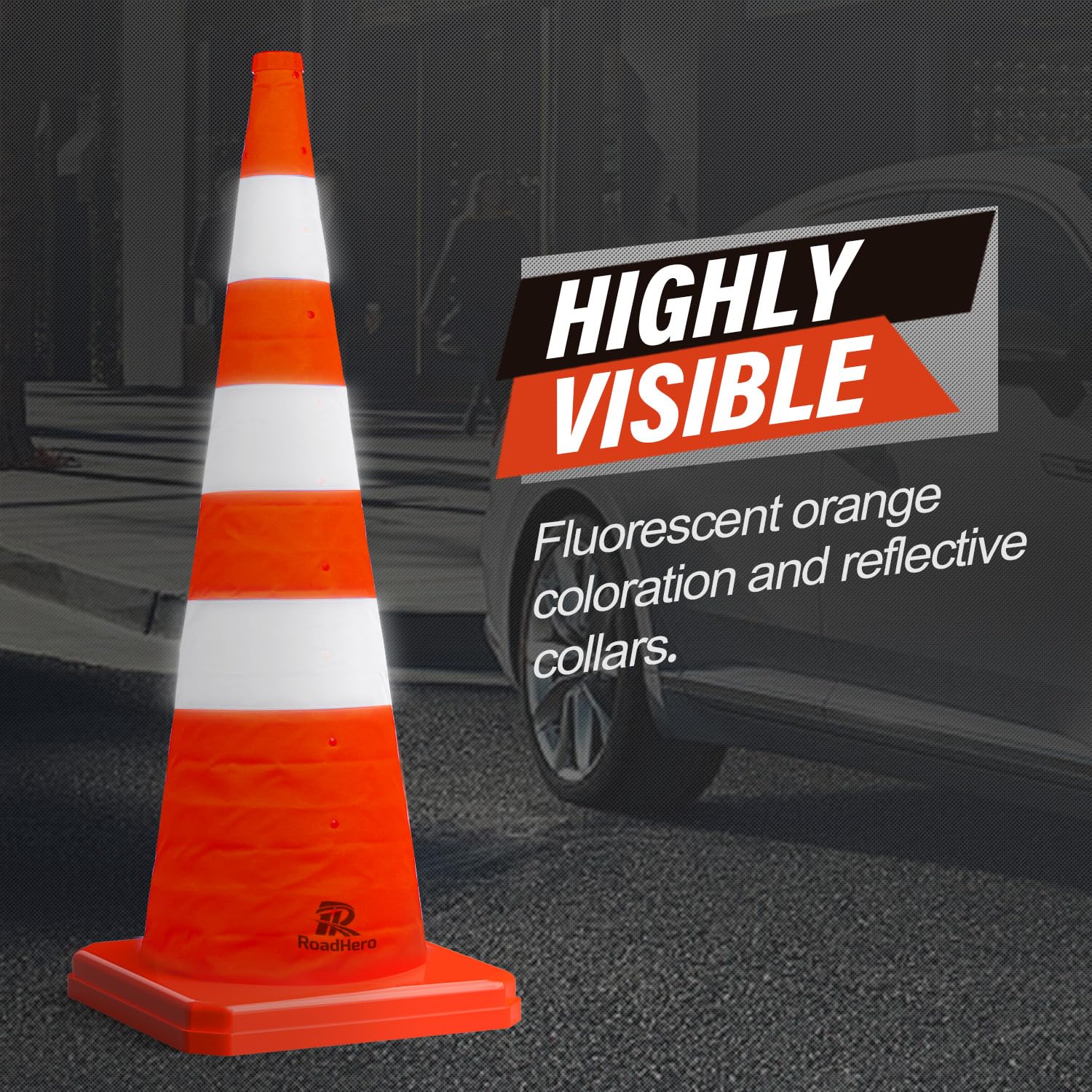 Highly Visible: The bright orange safety color and 360 degree reflective collars make the parallel parking cones visible from a long distance during day or night