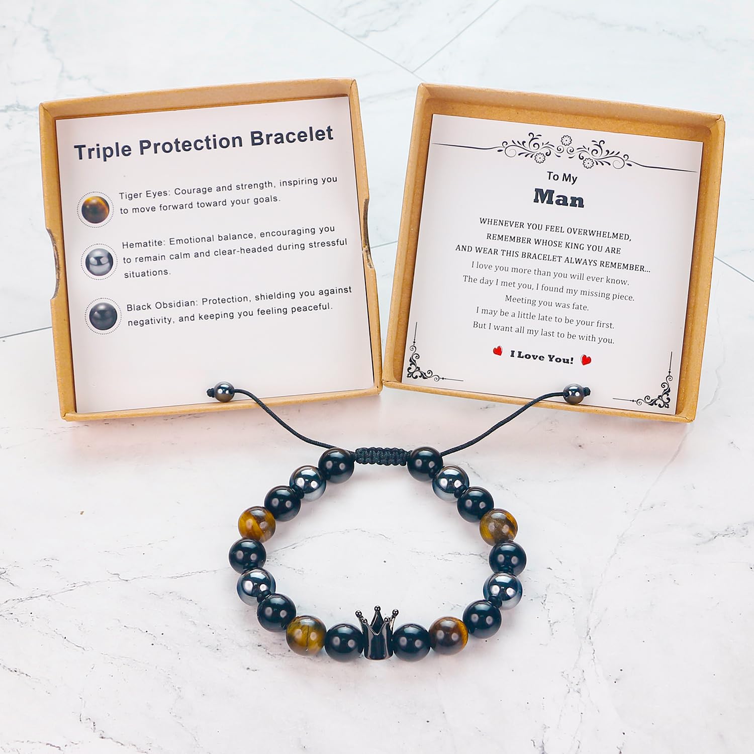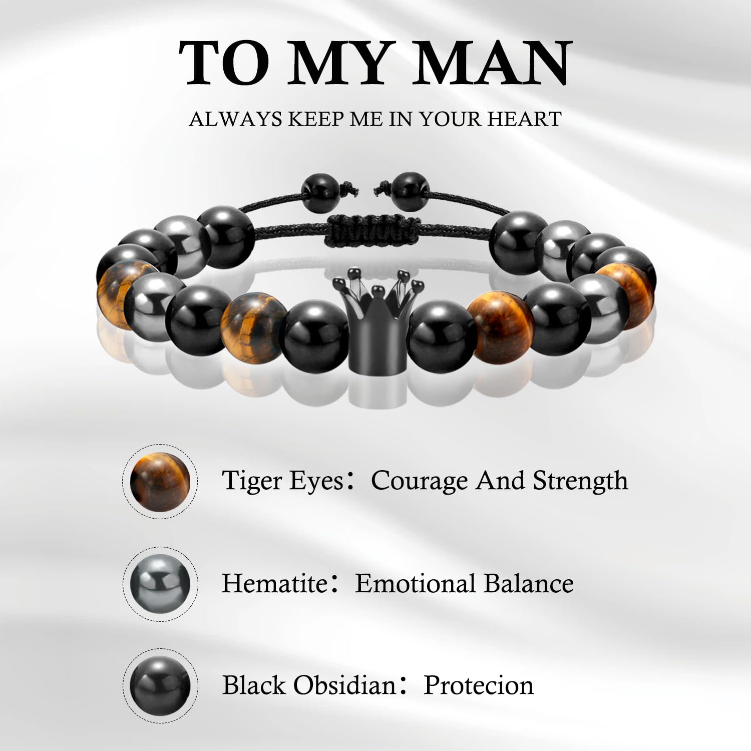 High Quality Material: Crafted from 10mm natural tiger eye stone, hematite, black obsidian, and black crown, the To My Man Bracelet exudes elegance and durability. Our commitment to using nature derived, nickel free, and lead free ensures hypoallergenic, skin friendly beads suitable for daily wear and any occasion.
