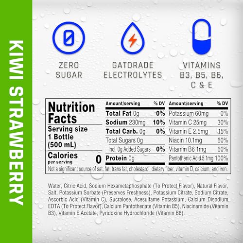 Includes 12 (16.9 fl oz) bottles of Propel Electrolyte Enhanced Water, Kiwi Strawberry flavored water with Zero Calories, Zero Sugar, Electrolytes for Hydration, and Vitamins C & E