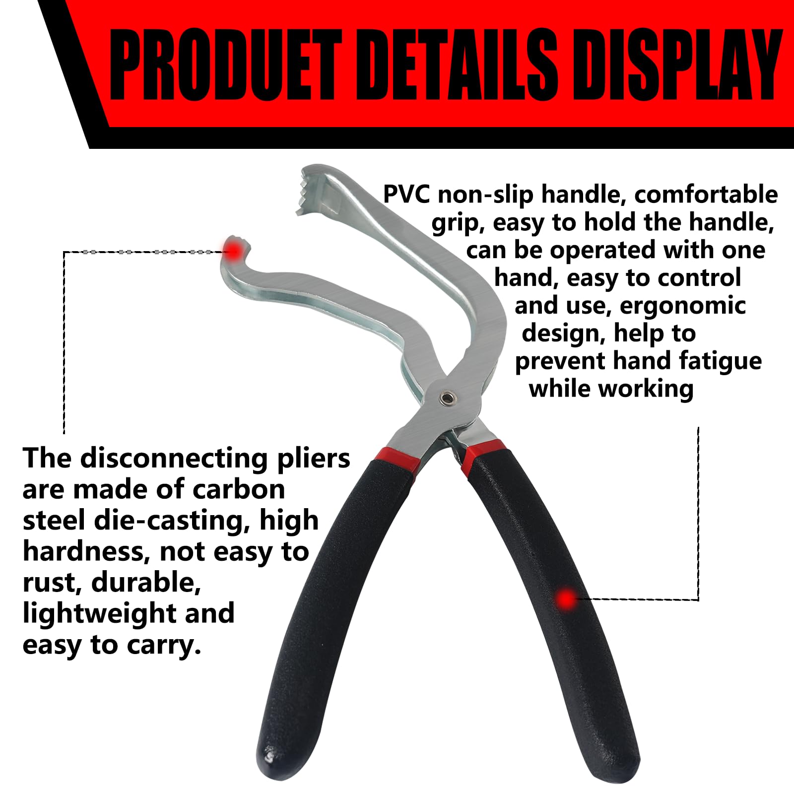 HIGH QUALITY: Automotive electrical disconnect pliers are made of high quality carbon steel, wear-resistant and durable. High temperature forging and hardening treatment, cutting sharp. Comfortable to use, reducing the time and difficulty of disassembling joints