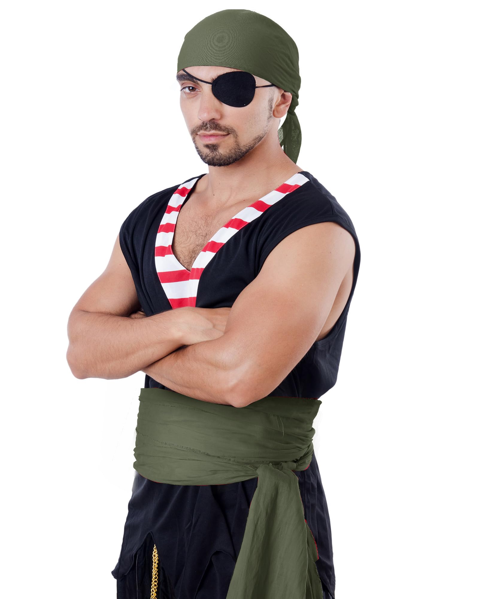 Package includes: 1 piece pirate bandana, 1 piece pirate large sash