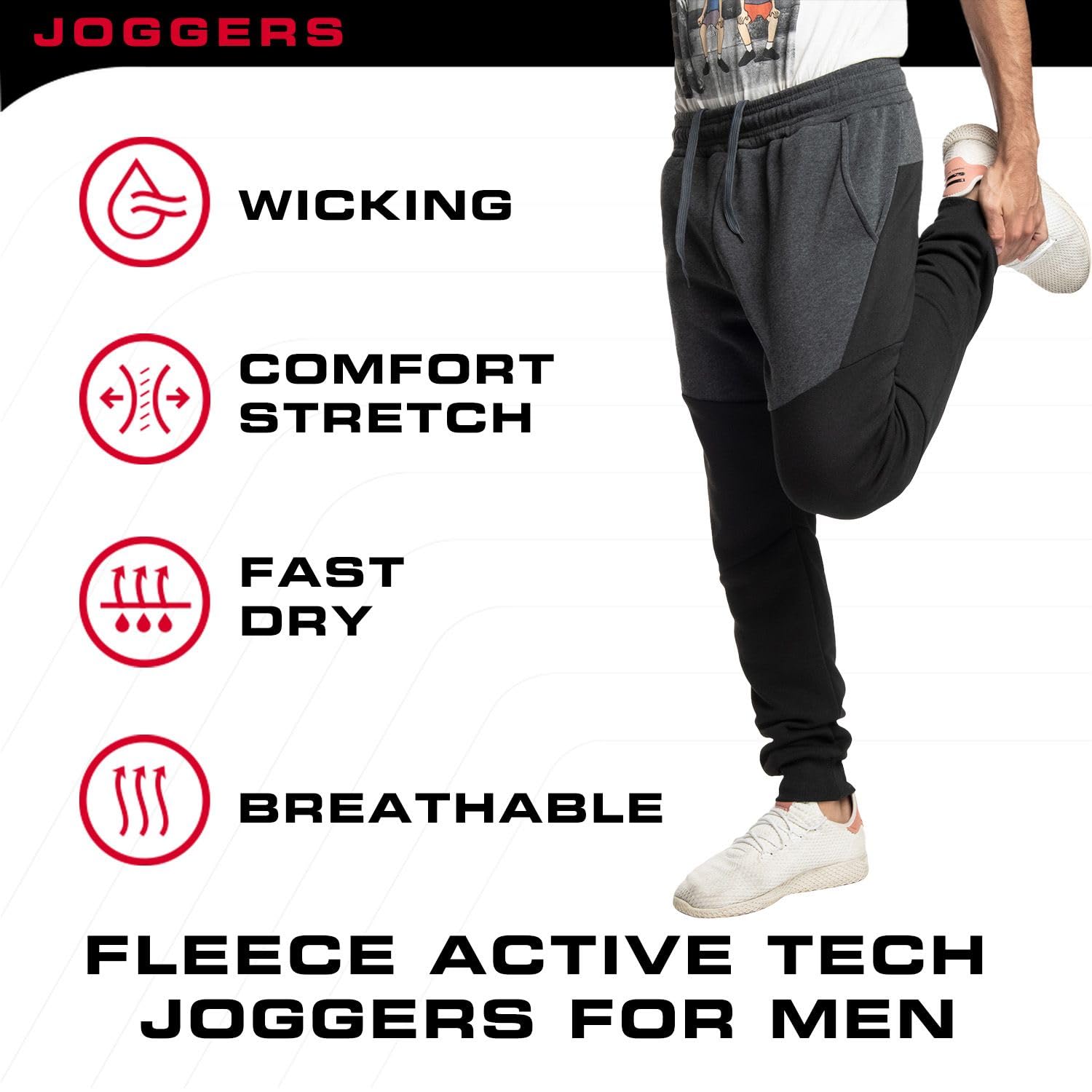 Jogger Pants For Men Styles With Zipper Pocket: Our activewear tech fleece joggers for men come in 3 styles: Black sweatpants 3 Pack, Color Block 3 Pack & Black, Heather Grey & Charcoal Grey sweatpants 3 Pack. All feature a high-tech, heat-sealed oversized zipper pocket.