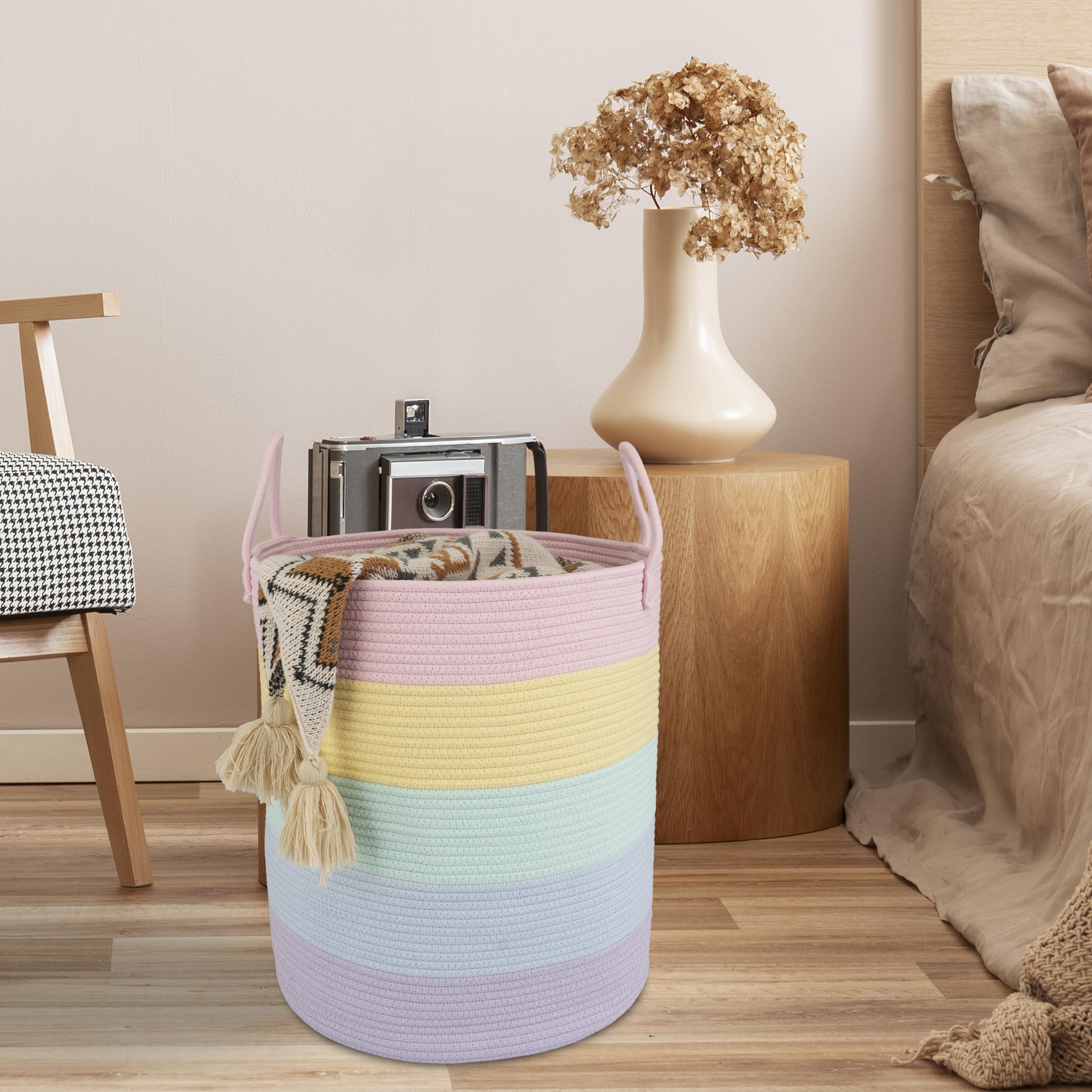 Designed to complement your room and decor: We have carefully selected classic solid colors for these rope basket bins or hampers for laundry. With these colors, the laundry hamper will look good in any room of your home. This tall round rope blanket storage basket enhances any room or decor. It is perfect for bedrooms, bathrooms, and dorm rooms. These aesthetic rope baskets or hampers for bedroom are essential items for your daily storage needs, helping keep your room clean and organized.