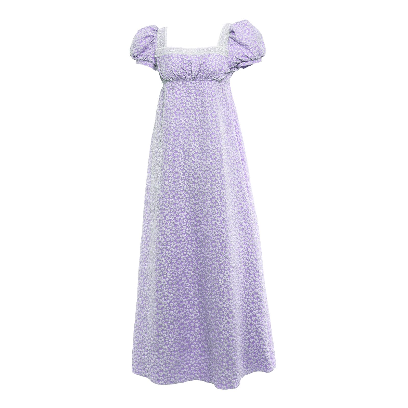 Design features - This regency dress is an elastic short bubble sleeve design, that enhances comfort. The square neckline is simple and elegant, decorated with golden accessories. Concealed zipper on the side for easy wearing and taking off. The floor-length skirt is in an A shape to show your figure.