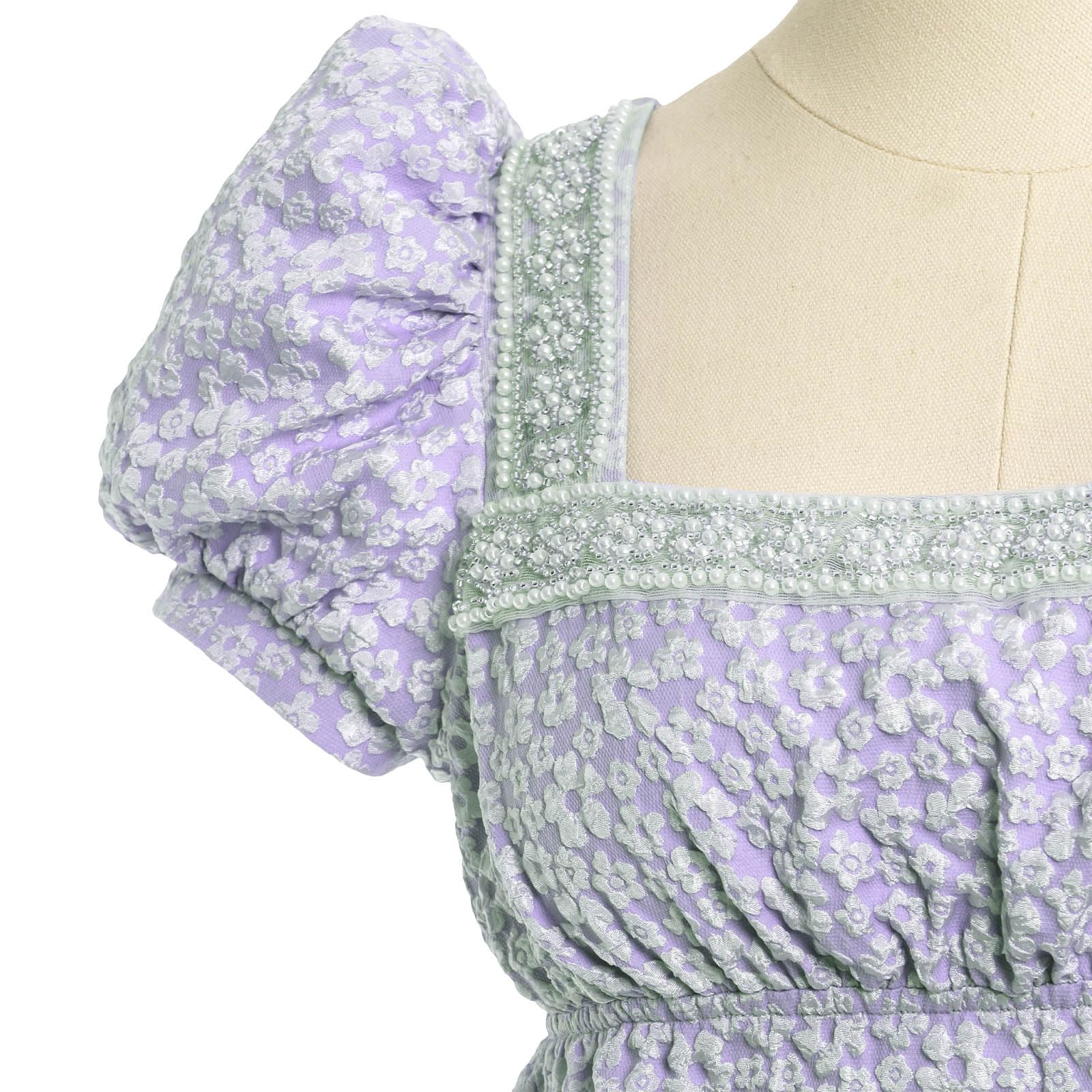 Fabric - This regency dress is made of jacquard fabric which is lightweight, breathable, and comfy. Low-temperature hand wash is recommended. Please do not put it in the washing machine to wash, in case the accessories fall off.