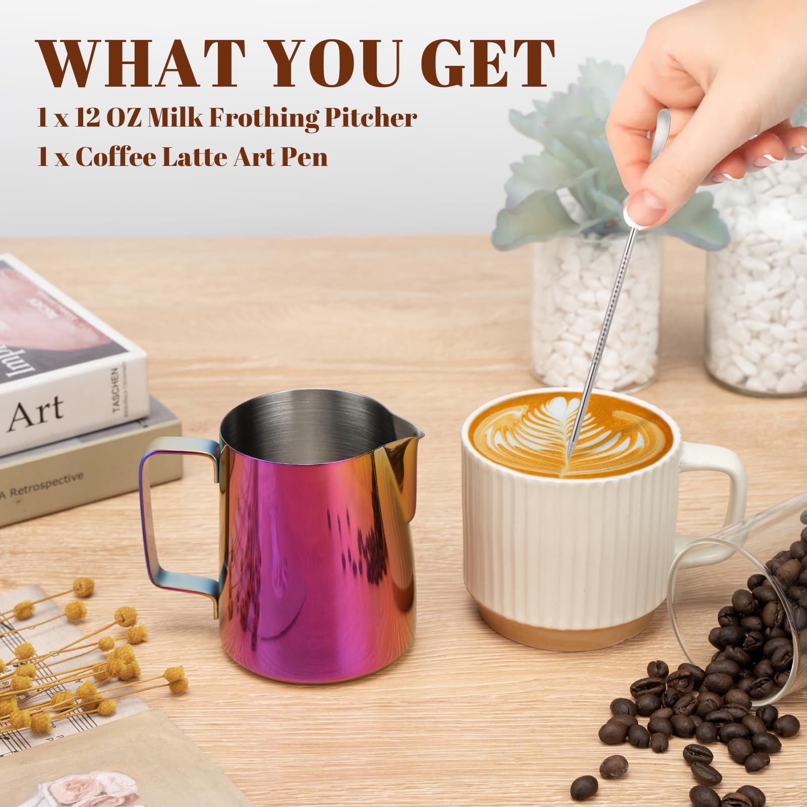 LATTE PEN: Amrules milk frother pitcher comes with a 304 stainless steel latte art pen, which features anti-slip design in the middle for easy use. You can make especial and beautiful patterns on your latte without a trembling hands