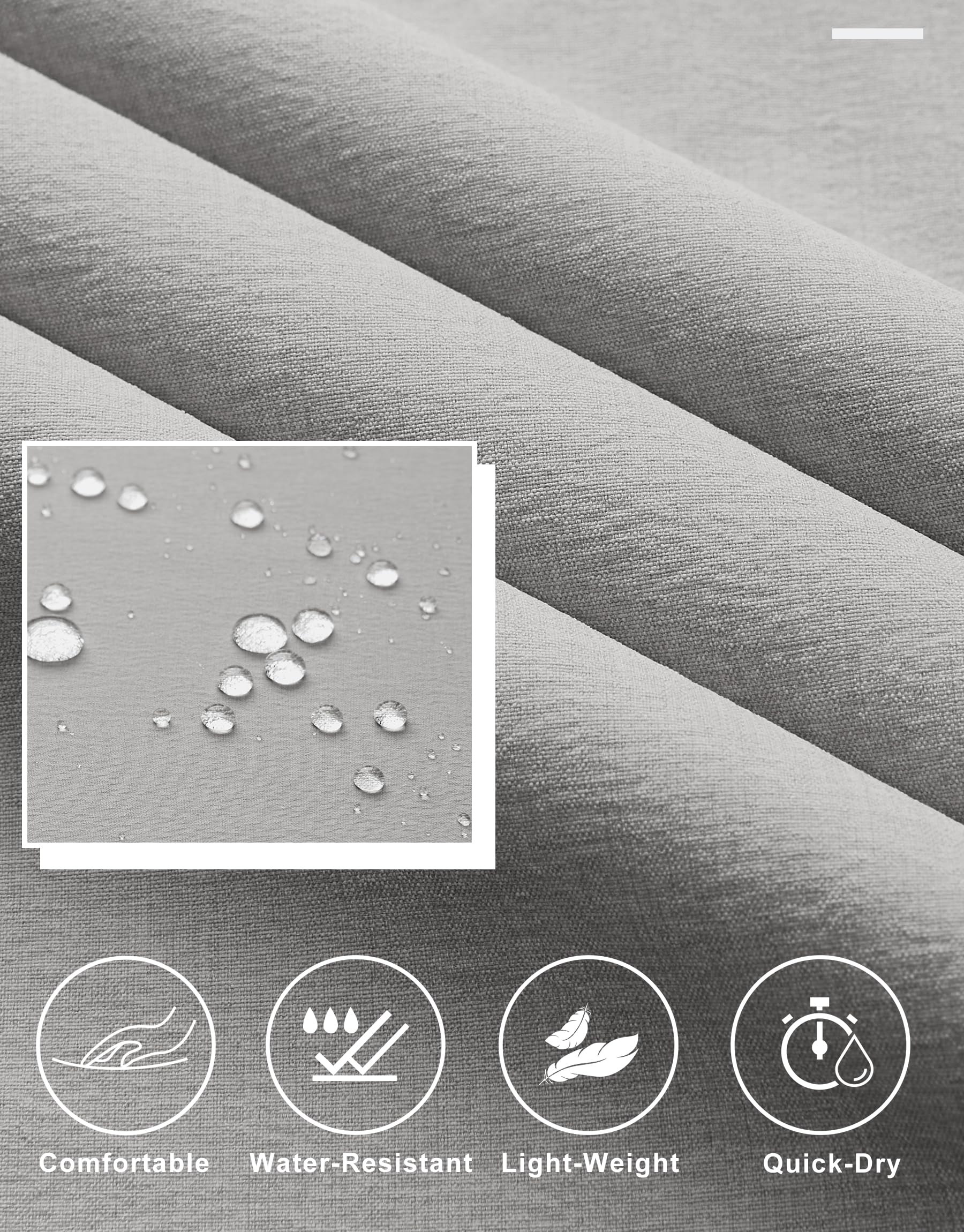 Comfort Fabric: Lightweight, stretchy, quick dry, moisture wicking fabric keeps you dry and cool all day, gentle stretch and shape-retention, water-resistant capacity to help resist light rain for a short time. PS: Although the pants may arrive with some creases due to packaging, a simple water wash will eliminate them