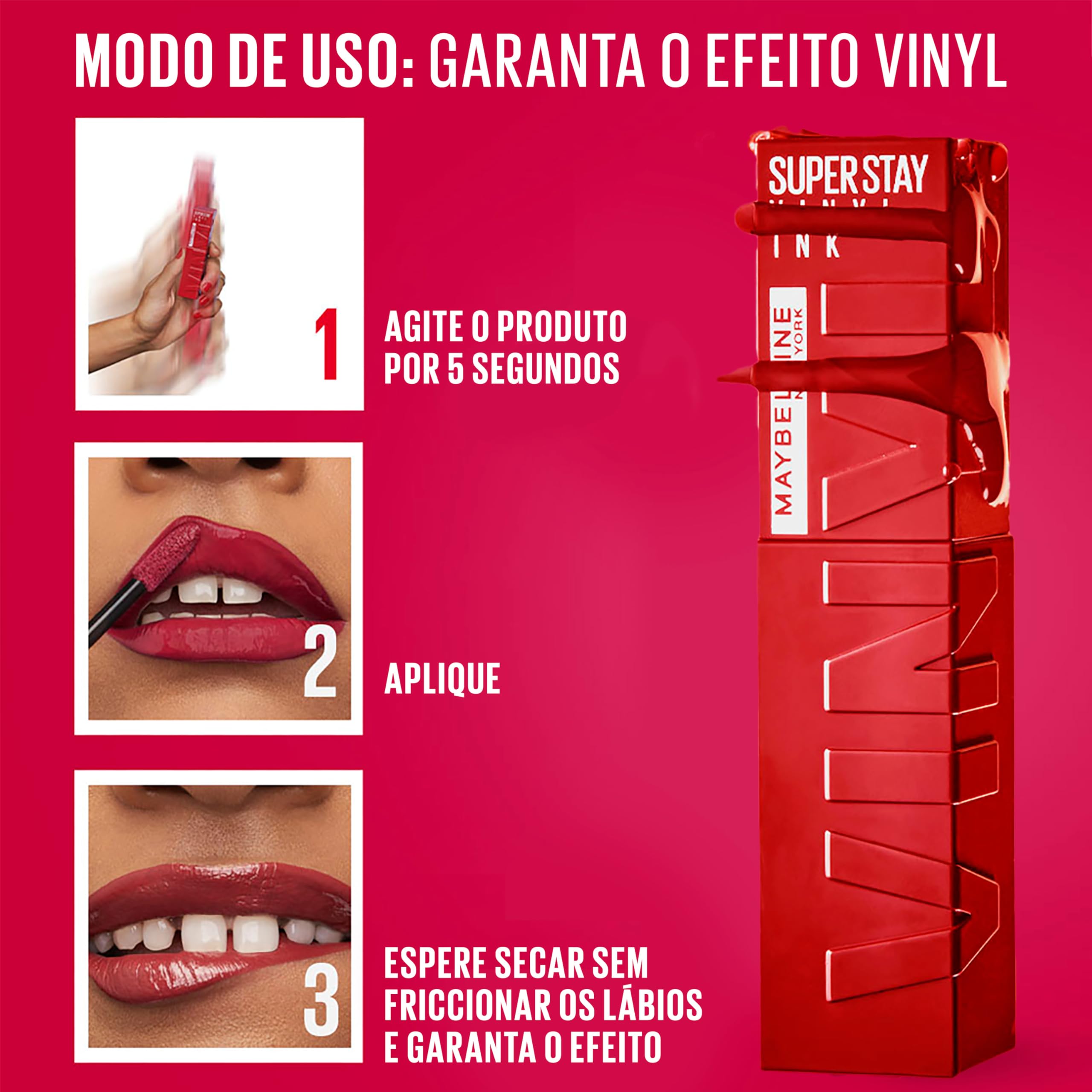 Shake up your longwear with Super Stay Vinyl Ink. This Liquid Lipcolor delivers no-budge saturated vinyl color and up to 16HR wear. Its color lock formula defies smudging and transfer. Swipe the formula across your lips and enjoy an instant shine and all day color. Available in 10 high-impact vinyl shades for your every lip look. From brights to saturated red tones and even the perfect everyday neutrals, express yourself with Maybelline longwear lipcolor