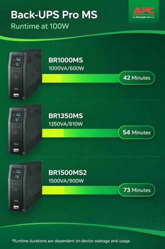 This APC 1000VA battery back up power supply offers guaranteed power and surge protection for wireless networks, computers, and other electronics in your home or business. Backup battery power supply is designed for use during outages and unsafe voltage fluctuations, and provides surge protector with battery backup in the event of damaging power surges and spikes. The APC Back-UPS PRO series of Uninterruptible Power Supply are the perfect battery backup for computer, external harddrive and routers to protect your data and keep you connected. This APC BR1000MS SinewaveUPS offers AVR, is active PFC compatible, and has a User-replaceable battery to prolong the life of your UPS by APC, which makes a great back up power for home