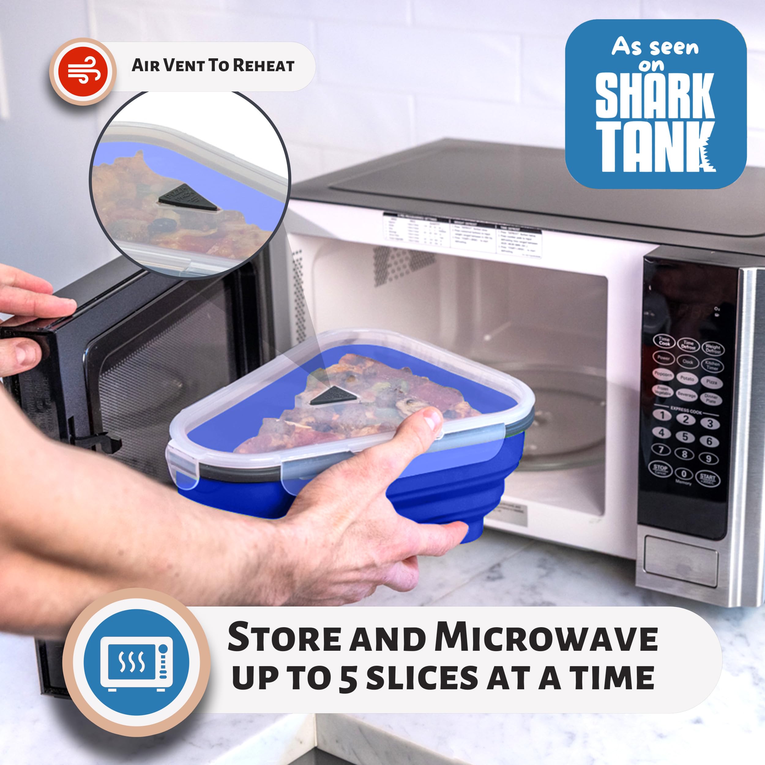 SPACE SAVER - Each pizza container collapses and expands to accommodate the number of pizza slices you have. Perfect for storing leftover pizza without a pizza box taking up the whole shelf!