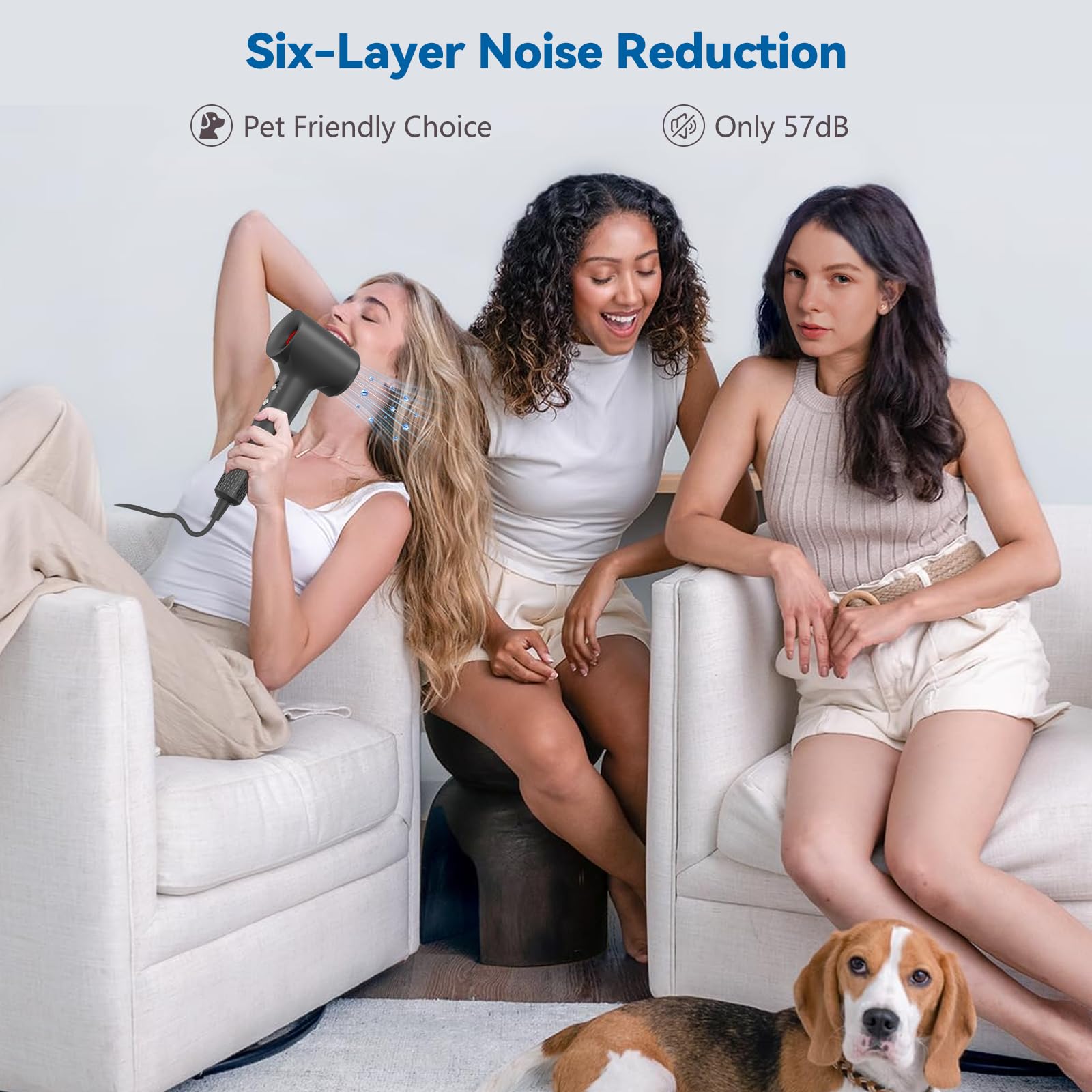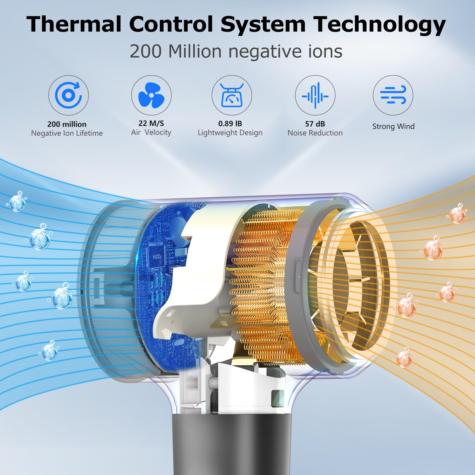 High Speed Hair Dryer:Equipped with a 110,000 RPM high-speed brushless motor that delivers wind speeds of up to 22 meters per second, this hair dryer dries hair in just 2-5 minutes - five times faster than traditional hair dryers - ensuring efficient drying, frizz reduction, and shine enhancement, so you can enjoy the comfort of a professional salon in the comfort of your own home.