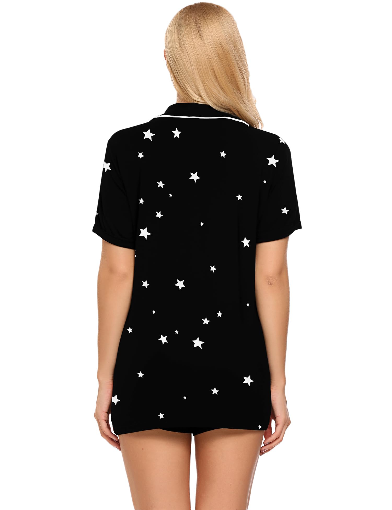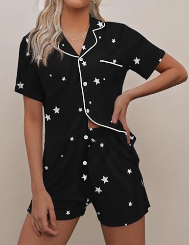 VERSATILE STYLE: Classic two-piece loungewear with short-sleeve top and boxer shorts. Relaxed fit suitable for sleeping, lounging, or casual wear.
