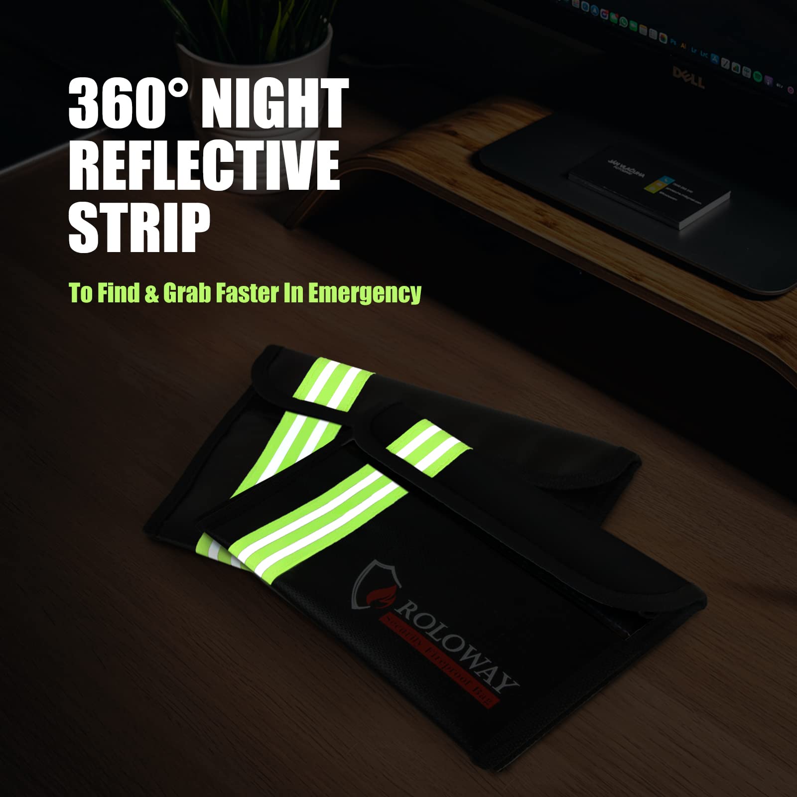 [NIGHT REFLECTIVE STRIP - FOR QUICK GRAB & GO]: In emergency, every minute counts. With the specifically designed Night Reflective Strip, you could find our fireproof bag for cash very soon even at night, which means you could find & take your most precious items in our fireproof bags much easier and quicker. Don't waste time trying to find your valuables in the dark. With the High Visibility Design, our fireproof money bag is great for Quick Grab & Go in emergency.