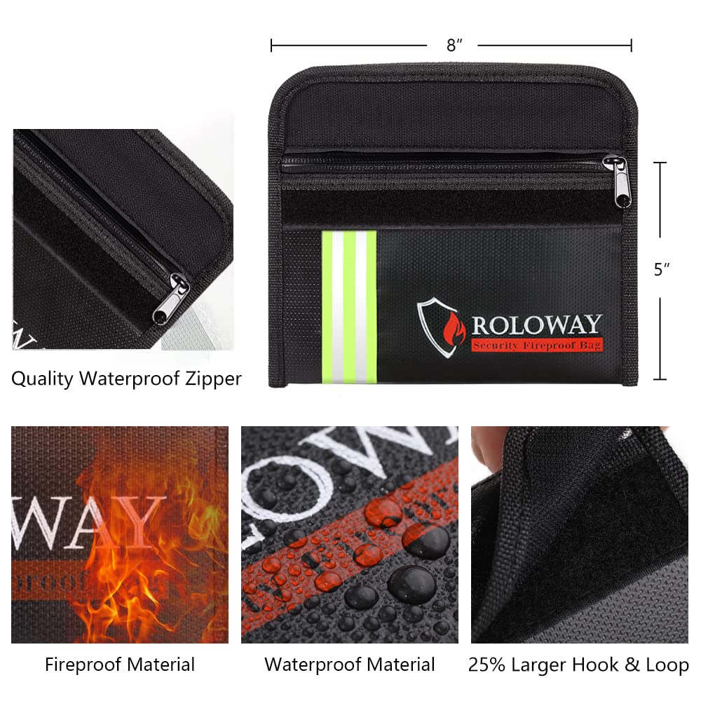 [PORTABLE SIZE FOR VALUABLES - Passport, Certificate, Cash, Keys & Jewelry] : Have many small size valuables? Do not know how to stow them? With size of 5 x 8 inches, our Fireproof Wallet Bags are SPECIFICALLY designed to store your passport, cash, letters, precious photos, certificate, jewelry, keys, cards and more. With the PORTABLE design, we hope you could keep your important things WELL PREPARED & PROTECTED anytime and anywhere.