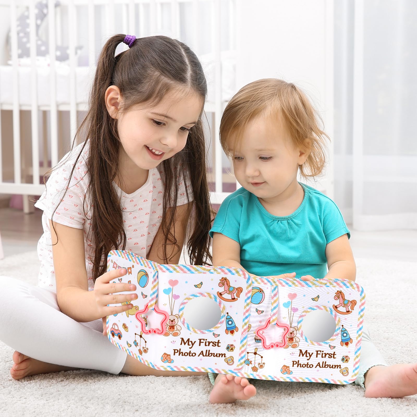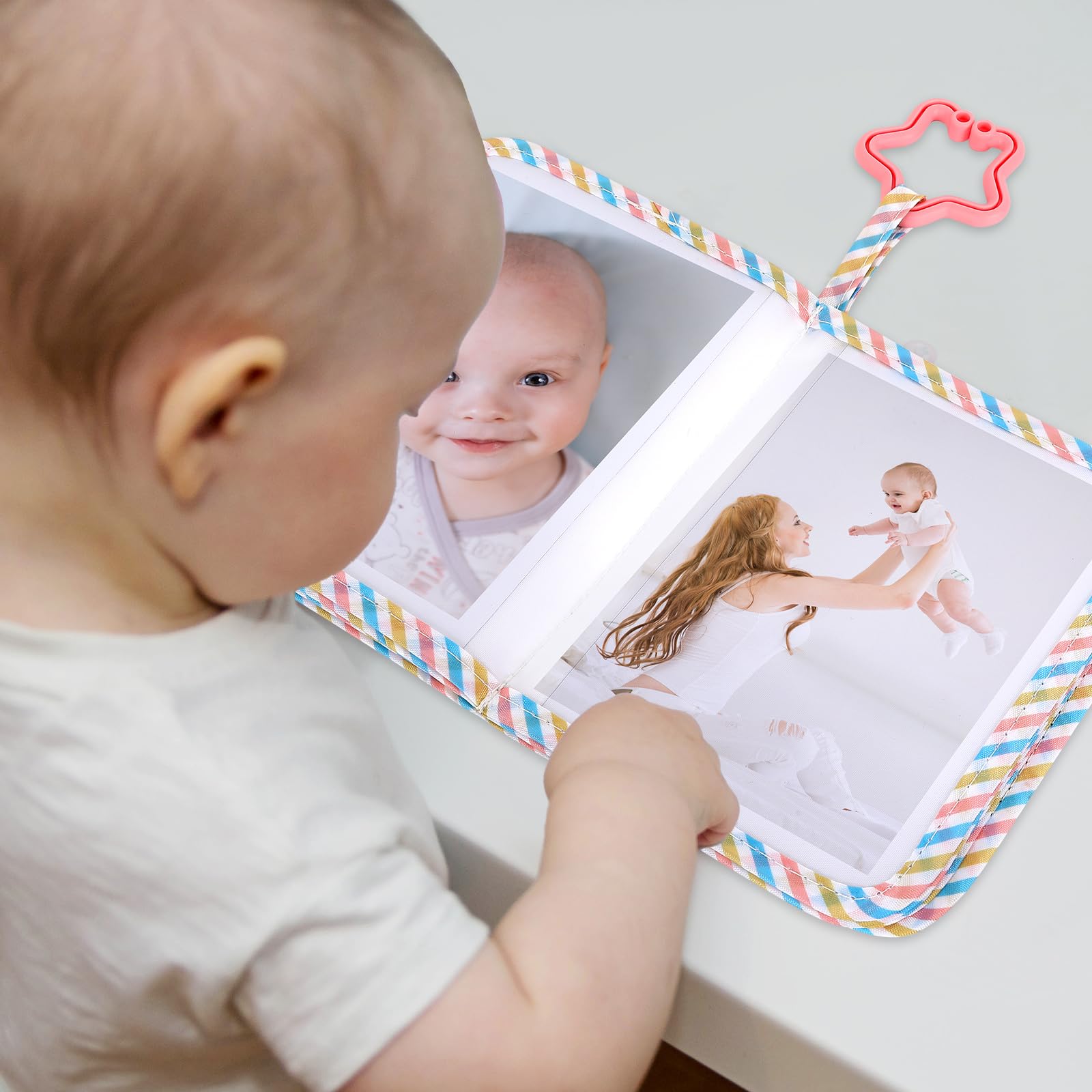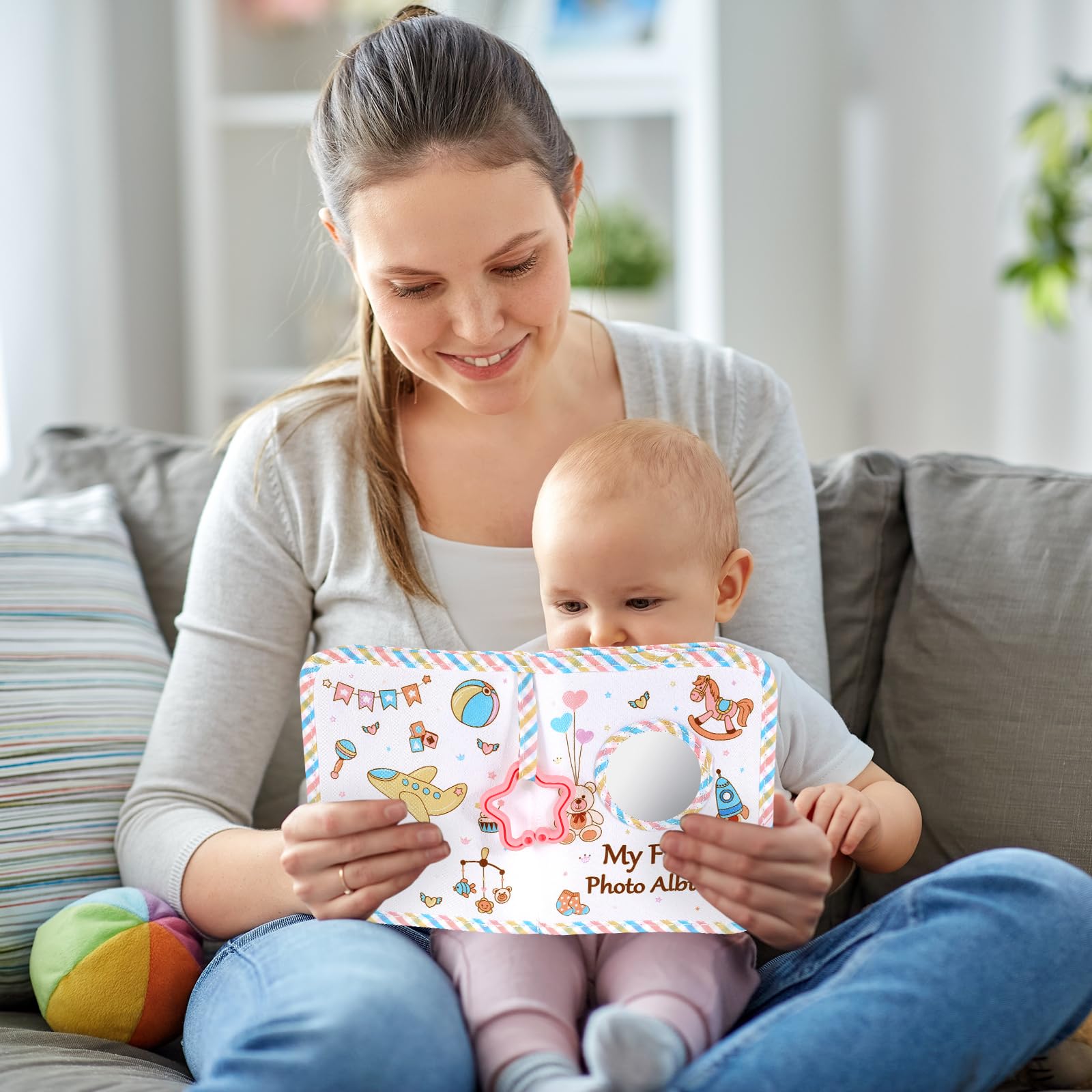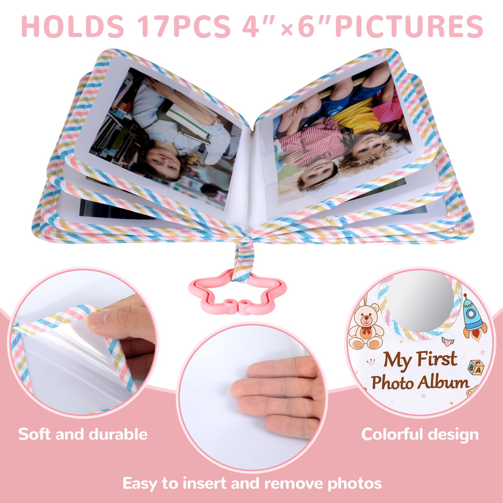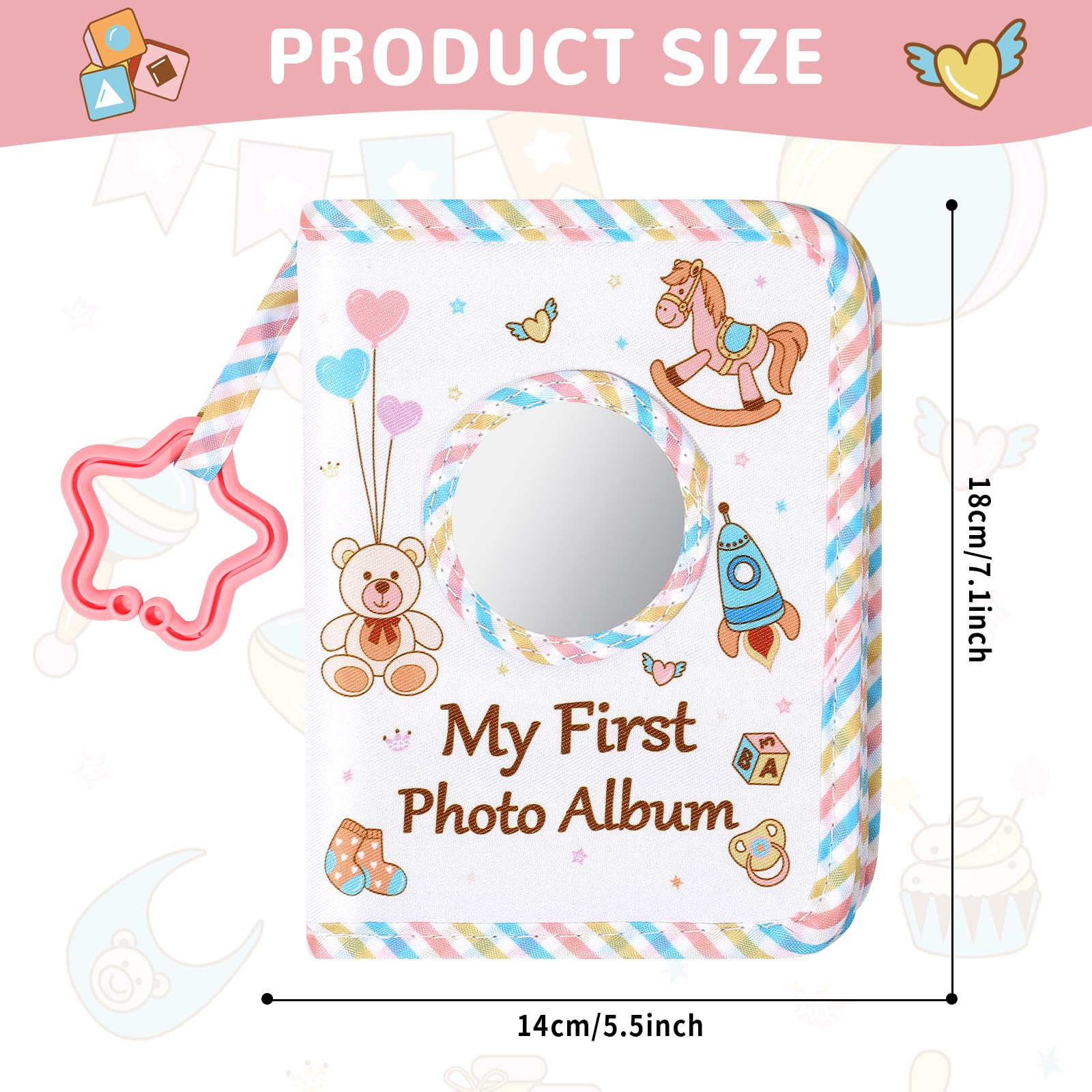 Super value pack: This colorful first family photo album is designed to hold up to 17 sheets of 4x6 inch photos, making it the ideal baby photo album to capture your little one’s milestones. With secure hooks for hanging and a small mirror on the back, it's a delightful addition to your baby scrapbook collection.