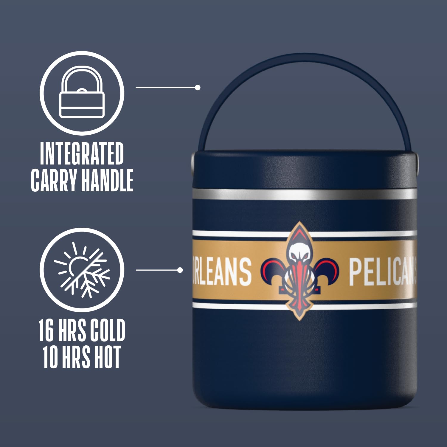 OFFICIALLY LICENSED BY THE NBA: This 25oz insulated food jar combines style and convenience, featuring a wide-mouth opening for easy filling and eating, plus a sturdy folding handle for effortless carrying, perfect for keeping your meals fresh whether you're at work, or on game day.