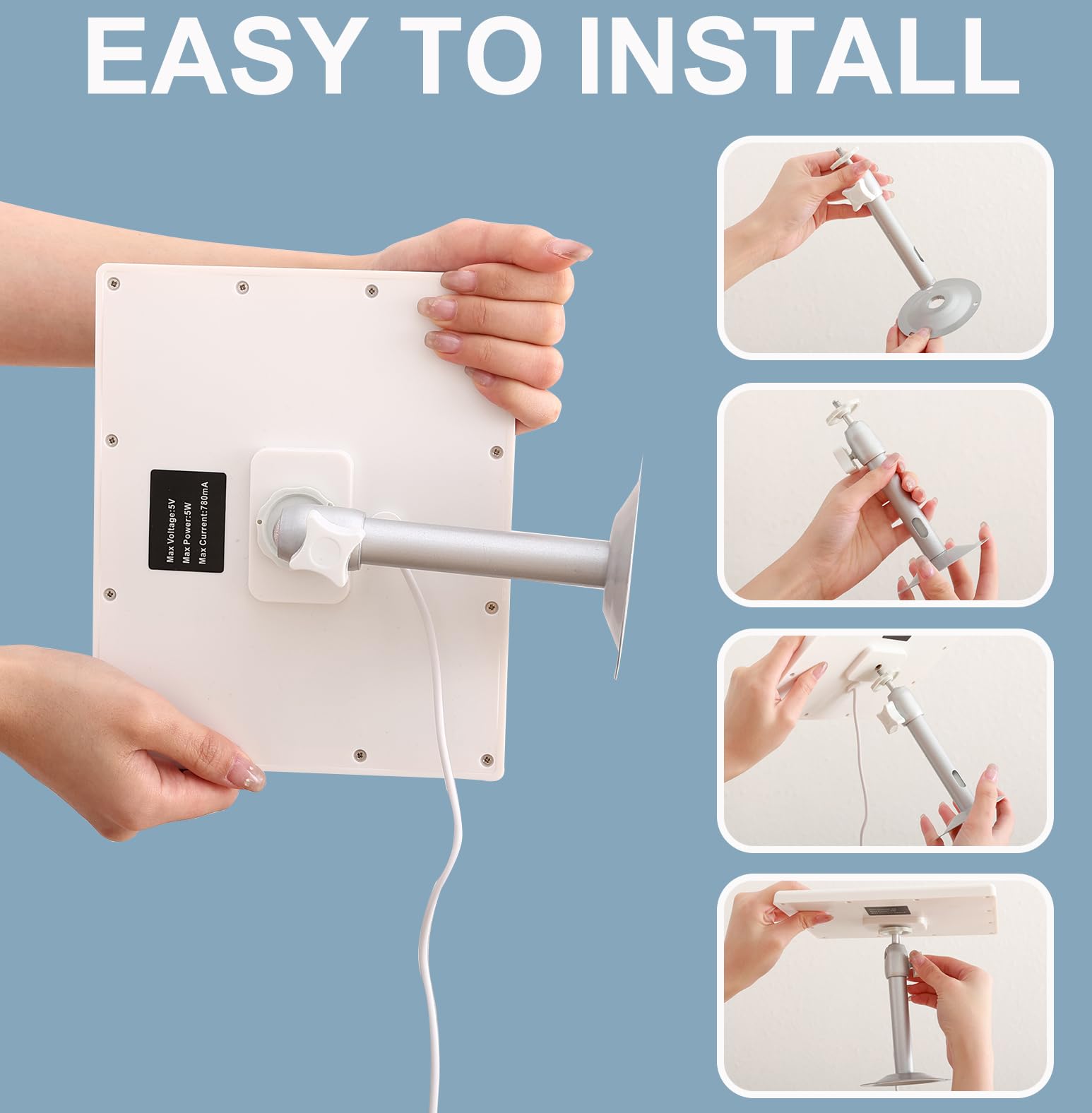 360°Adjustable Mounting Bracket:Our Ring camera solar charger included 360°Adjustable Bracket,you can adjust the solar panel and choose a sunny post which could get enough sunlight.