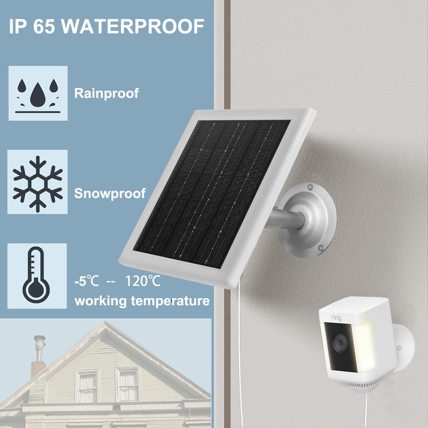 Non-Stop Power Supply:The ring camera solar panel can absorb sunlight and convert it into electrical energy continuously, so you will not concerned about the camera running out of power and have to take out the camera frequently to charge the battery.