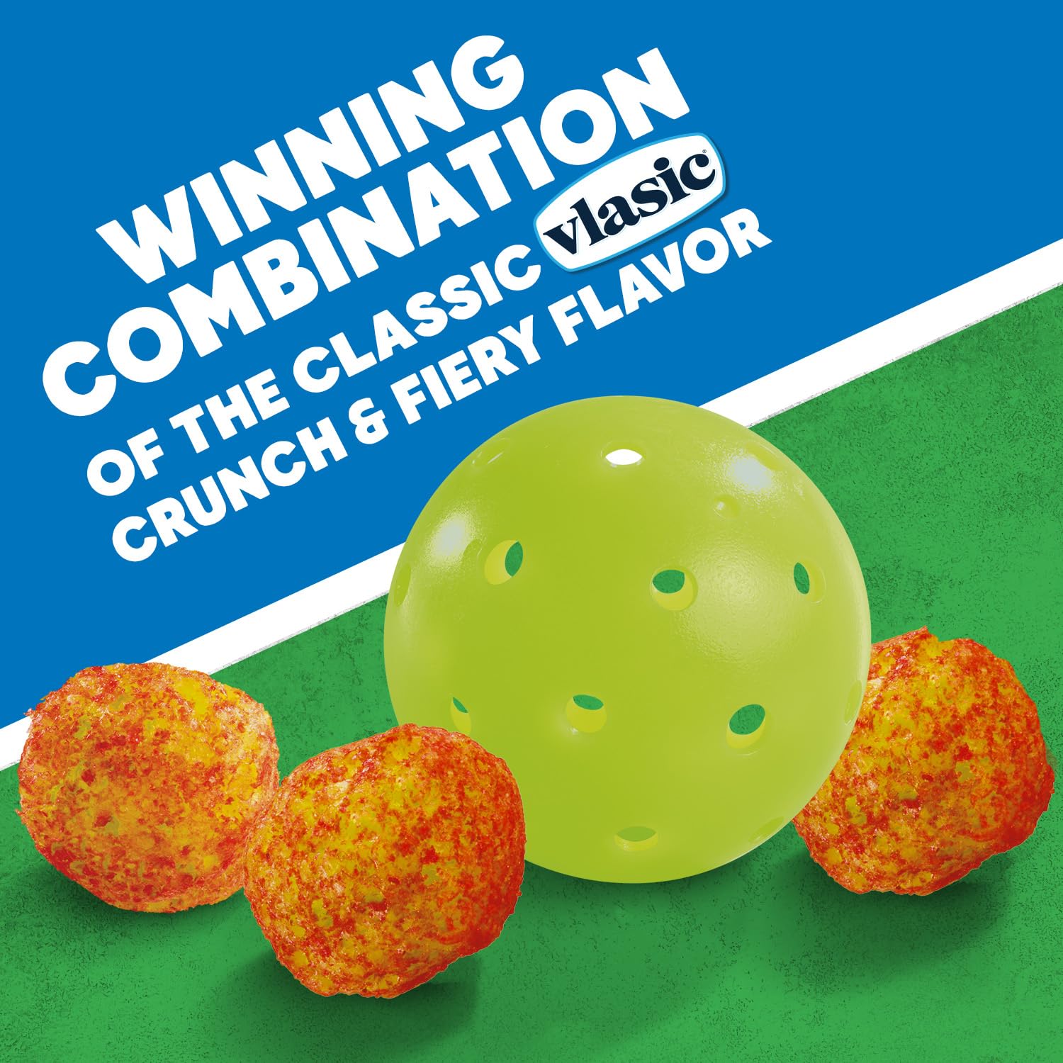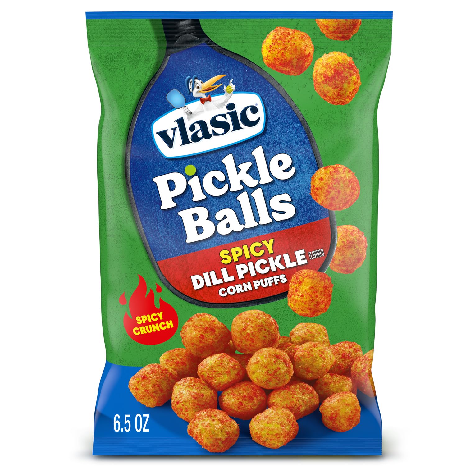 Crank up the heat and keep your taste buds on their toes with Vlasic Pickle Balls Spicy Dill Pickle Flavored Corn Puffs. These spicy corn puff balls are gluten free and deliver an overhead smash of fiery flavor to give you a grand-slam snacking experience on or off the pickleball court. Every satisfying crunch serves up a burst of intense spicy dill pickle and vinegar flavor that is the perfect balance of spicy and tangy. Vlasic is a proud sponsor of the Association of Pickleball Players and created these deliciously spicy dill pickle flavored snacks to get in the game. Say match point to your munchies and crunch into the big, bold taste of Vlasic Spicy Pickle Balls.