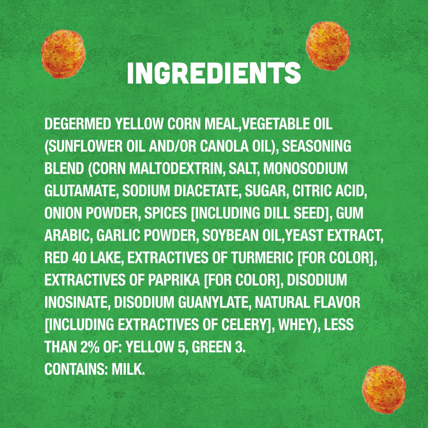 Contains one 6.5 oz. bag of Vlasic Pickle Balls, Spicy Dill Pickle Flavored Corn Puffs