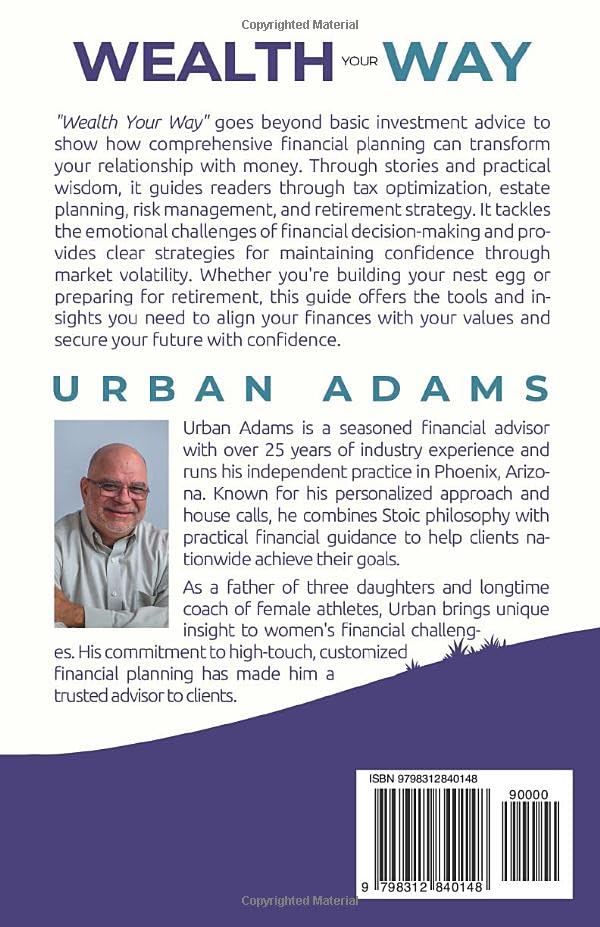 Are you successful on paper but still lie awake at night wondering if you're truly prepared for retirement? Do you wish your financial advisor spoke to you like a real person instead of throwing jargon at you? "Wealth Your Way" offers a refreshingly human approach to comprehensive financial planning. Drawing from 25 years of experience, financial advisor Urban Adams shares his unique "high-touch" methodology that goes far beyond basic investment advice. Through engaging real-life stories and clear, actionable strategies, Adams guides you through: Tax optimization techniques that help you keep more of what you earn Estate planning strategies that secure your legacy Risk management approaches that protect your financial future Social Security and pension optimization methods that maximize your retirement income Emotional decision-making tools that help you stay the course during market volatility What sets this book apart is Adams' personal approach, influenced by Stoic philosophy and decades of hands-on experience. He doesn't just tell you what to do – he helps you understand why, making complex financial concepts accessible and actionable. Whether you're still accumulating wealth or nearing retirement, this book provides the roadmap you need to align your finances with your values. "Wealth Your Way" isn't just about building wealth; it's about creating the life you want while ensuring your financial security. Adams' commitment to personalized service shines through in every chapter, making this an indispensable guide for anyone seeking clarity, confidence, and peace of mind in their financial journey. Perfect for successful professionals, business owners, and anyone who believes financial planning should be about more than just numbers. Discover how a truly comprehensive, personalized approach to financial planning can transform your relationship with money and help you build the future you envision.