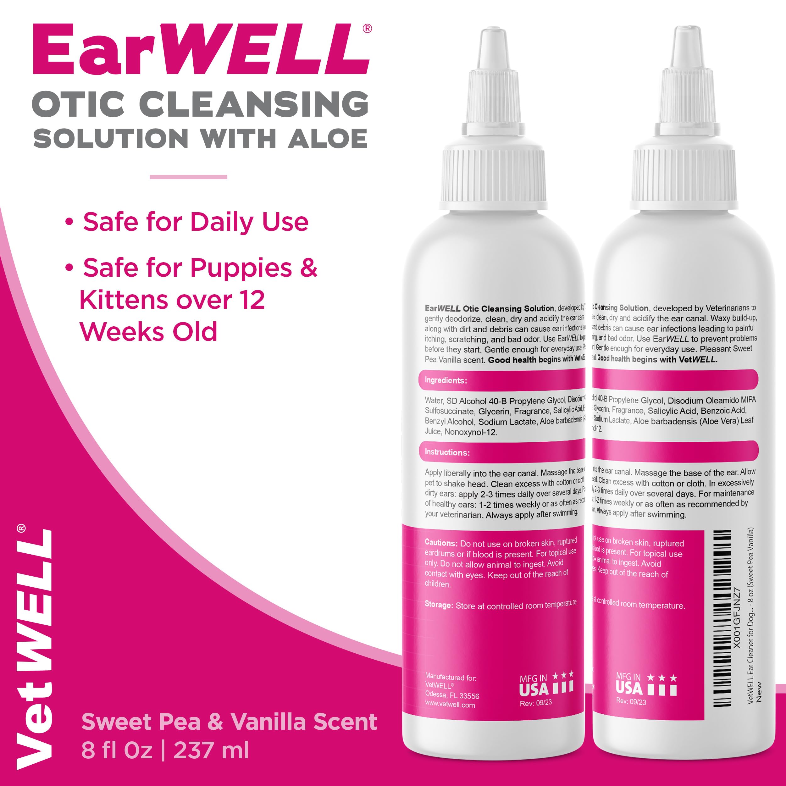 VetWELL Ear Cleaner for Dogs and Cats - Otic Rinse for Infections and Controlling Ear Infections and Odor in Pets - 8 oz (Sweet Pea Vanilla)