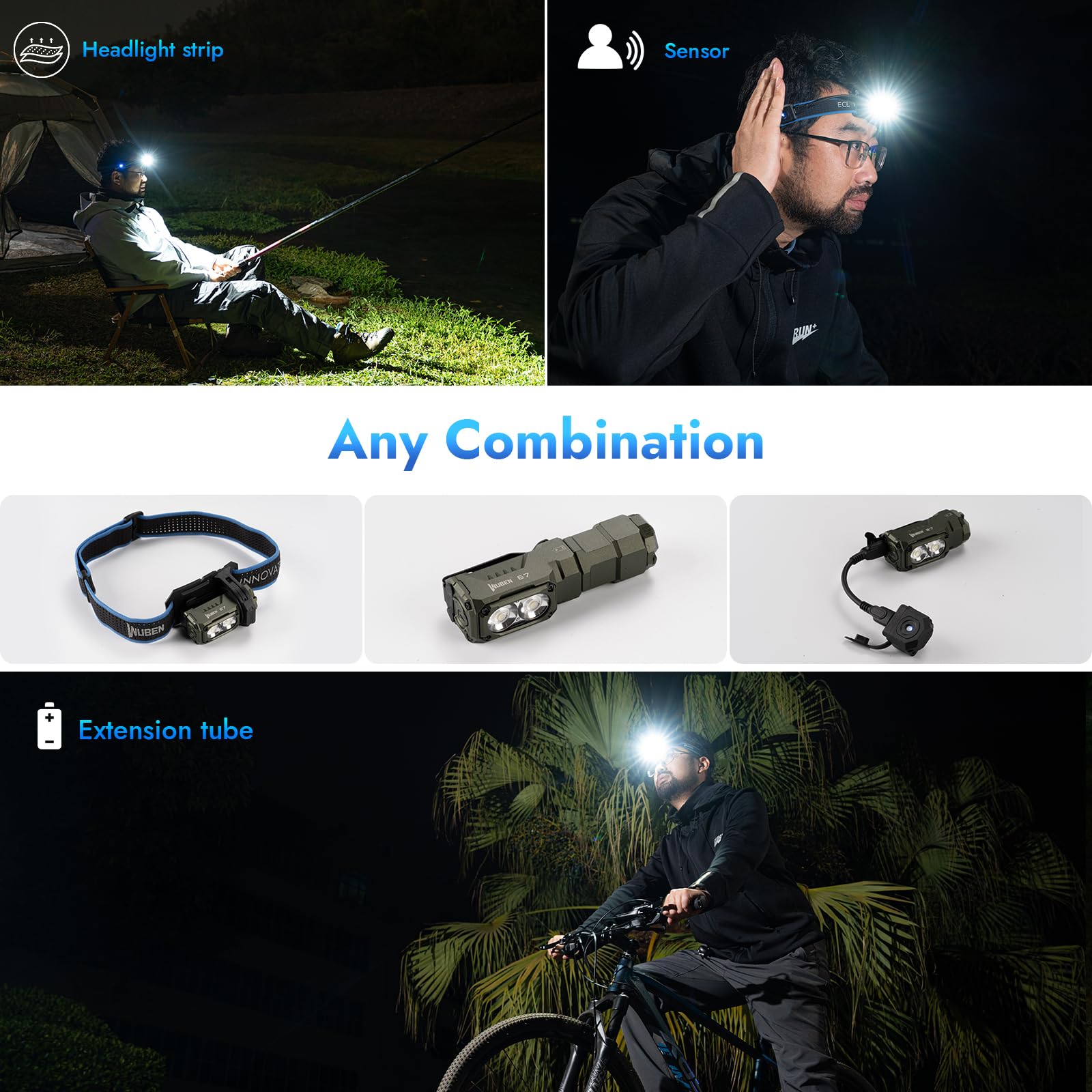 PERSONALIZED EDC FLASHLIGHT: WUBEN E7 is a multi-purpose EDC flashlight that shows your personality. The appearance is stylish and trendy, equipped with P9 high color rendering 6500K LED lamp beads, which can provide high output up to 1800 lumens and 175° ultra-wide-angle floodlight.It is also a very stable headlamp; you only need to fit it into the ergonomic headband; freeing your hands while still providing a stable light.