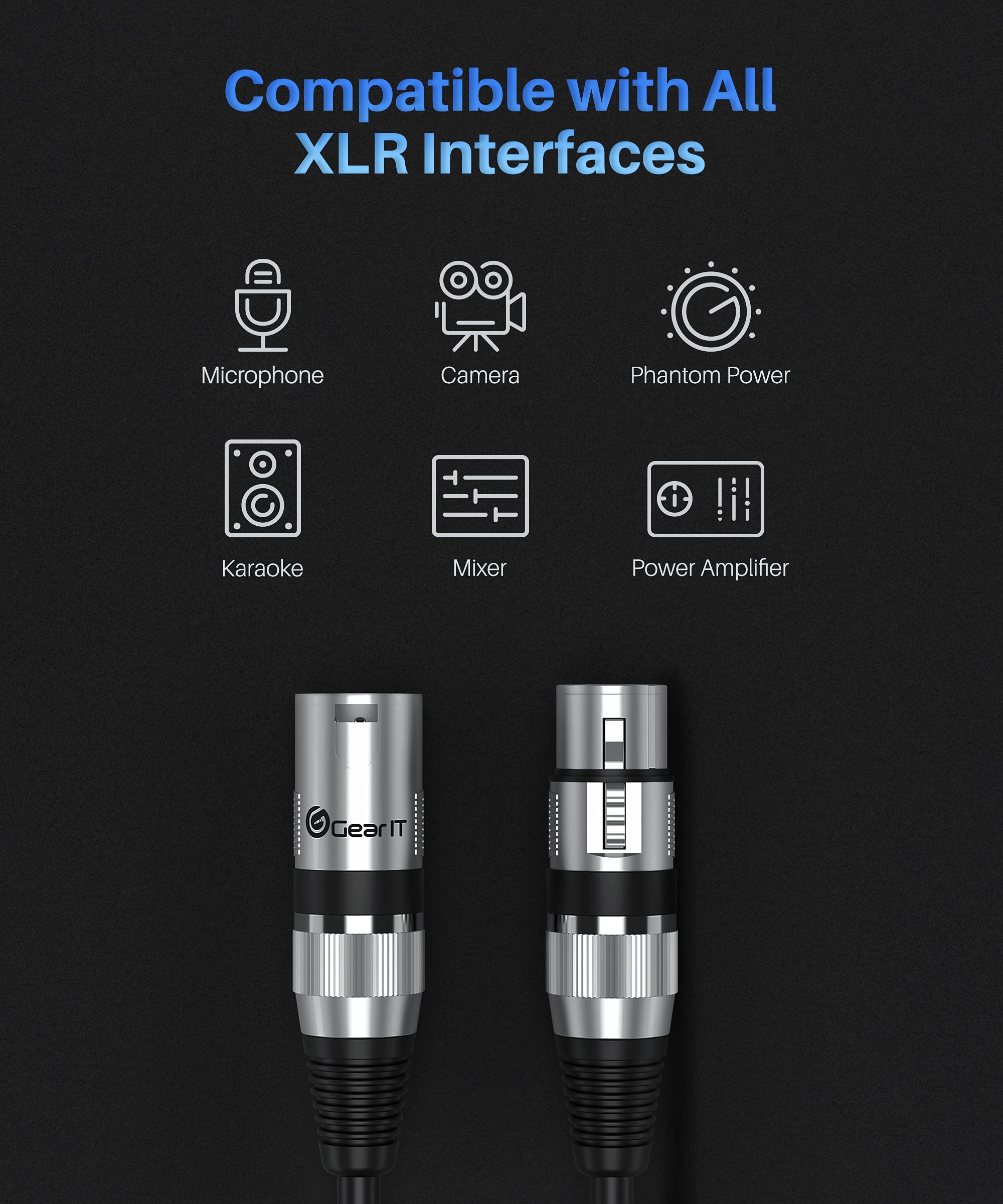 WIDE COMPATIBILITY - GEARit XLR Cords come in male to female XLR ends and have multi-pack options: 1-pack, 2-pack, 6-pack, 10-pack. Various XLR cord lengths such as: 1.5 ft, 100 ft (30m), 150 ft (45m), 200 ft (61m). Search for GEARit XLR Cables to find all our XLR mic cables.