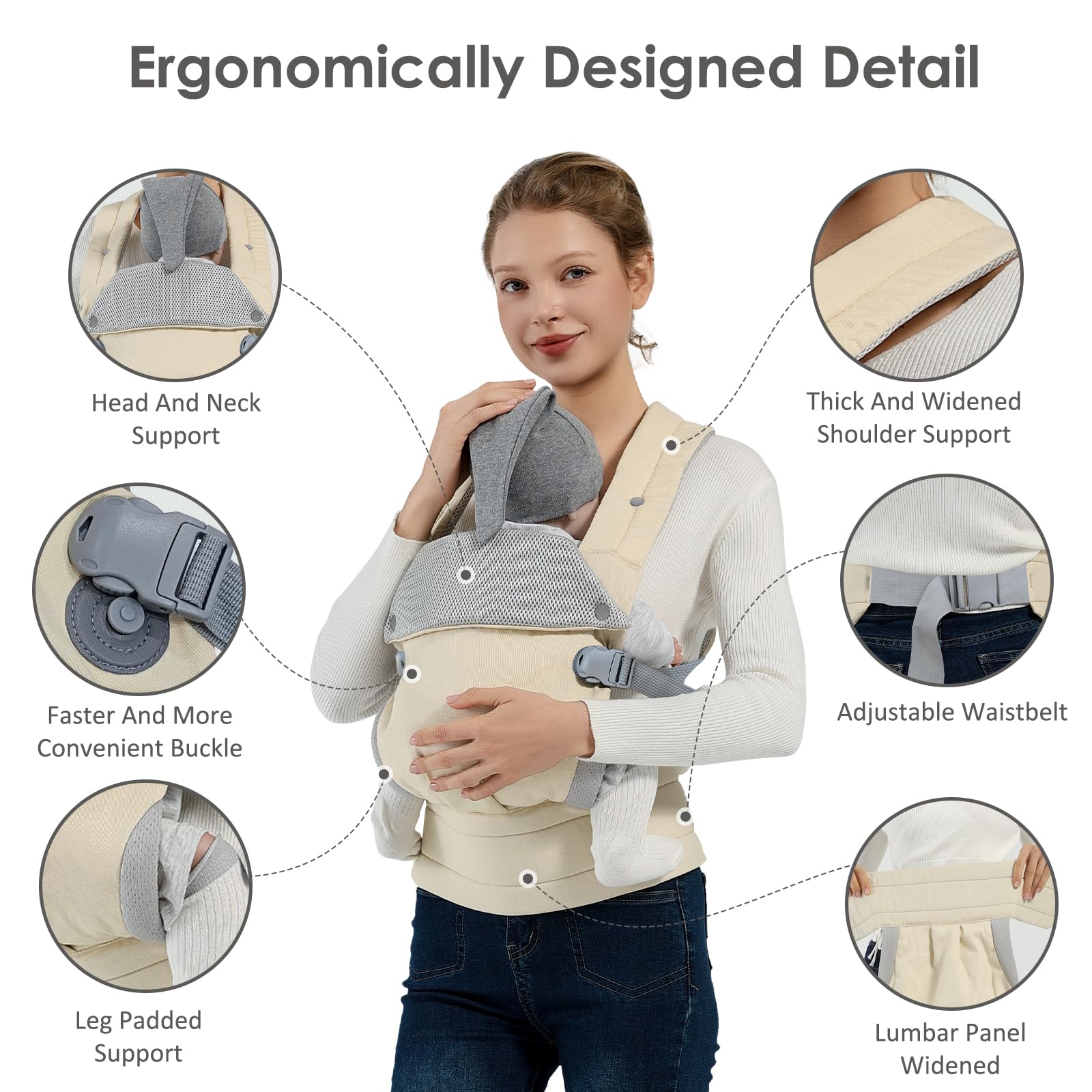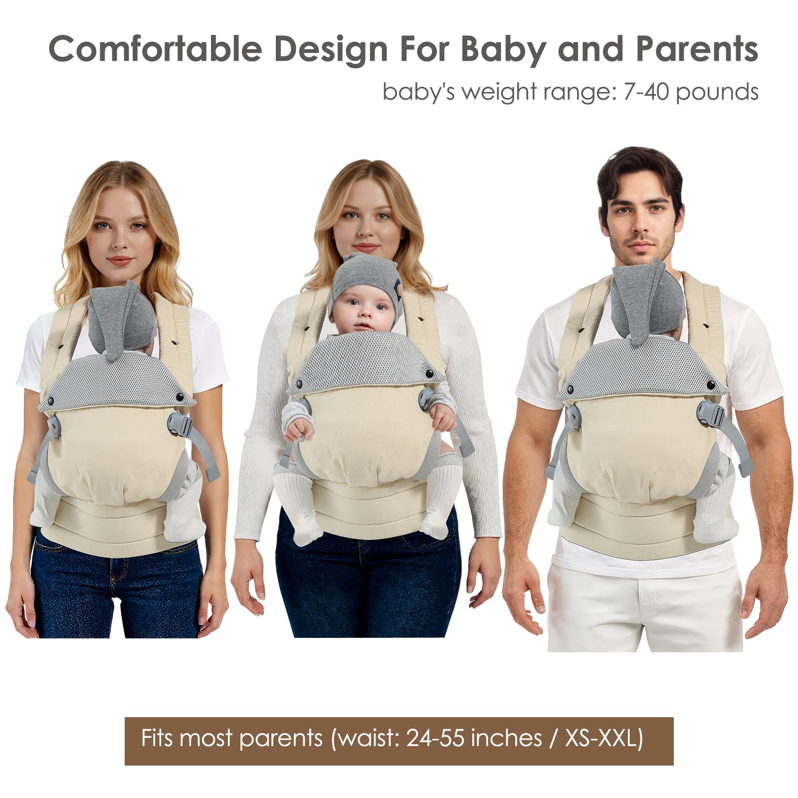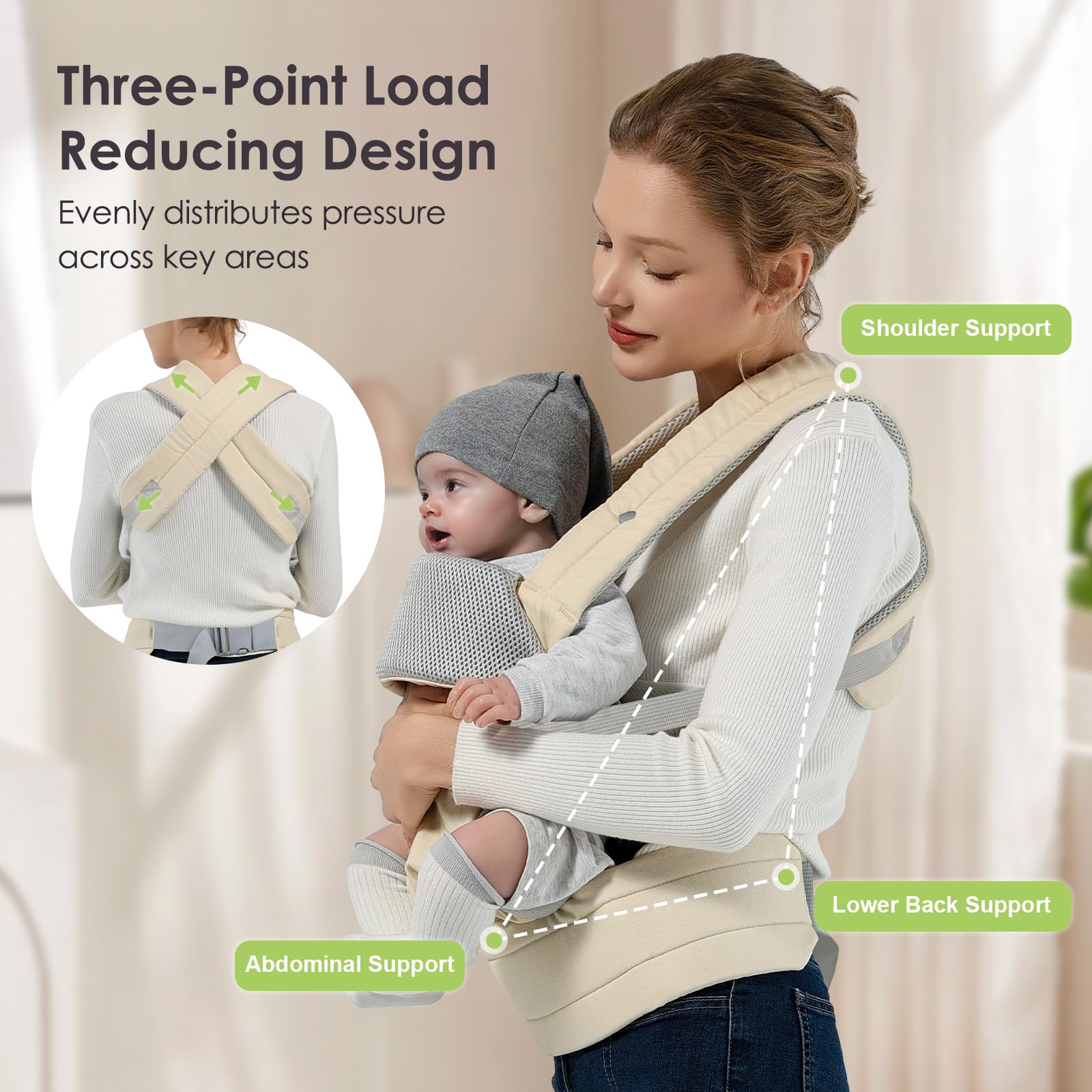 Hands Free and Save Effort: This baby carrier adopts an innovative back cross design that subtly distributes weight for easy, labor-saving long-term use, freeing up your hands for daily activities. It perfectly combines convenience with comfort, making parenting on the go hassle-free.