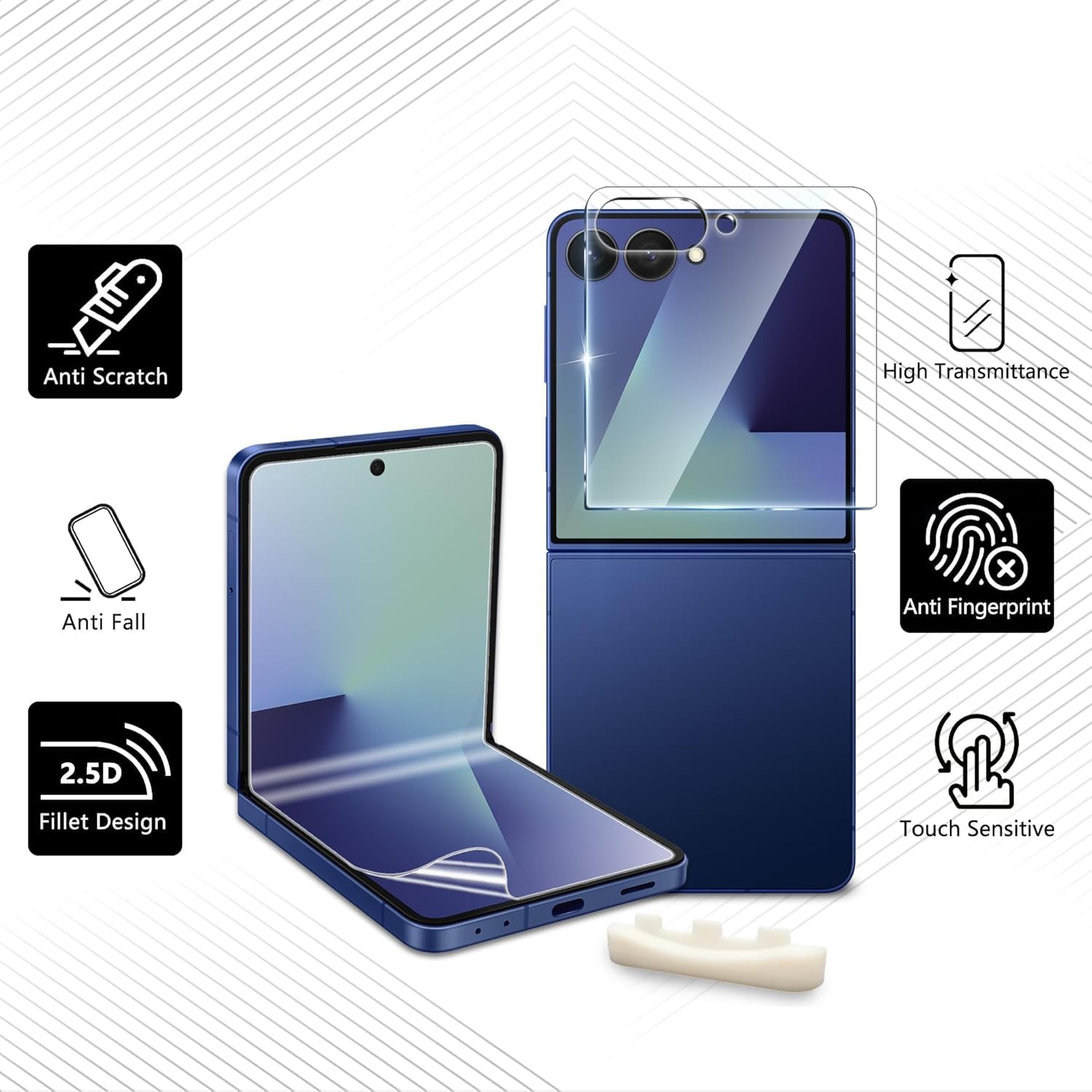 Flexible Anti-Fold Tech:Designed exclusively for foldable smartphones, Samsung Flip 7 screen protector redefines durability and clarity. Crafted with advanced flexible polymer technology, it bends seamlessly with your device’s hinge, ensuring no creases, bubbles, or warping