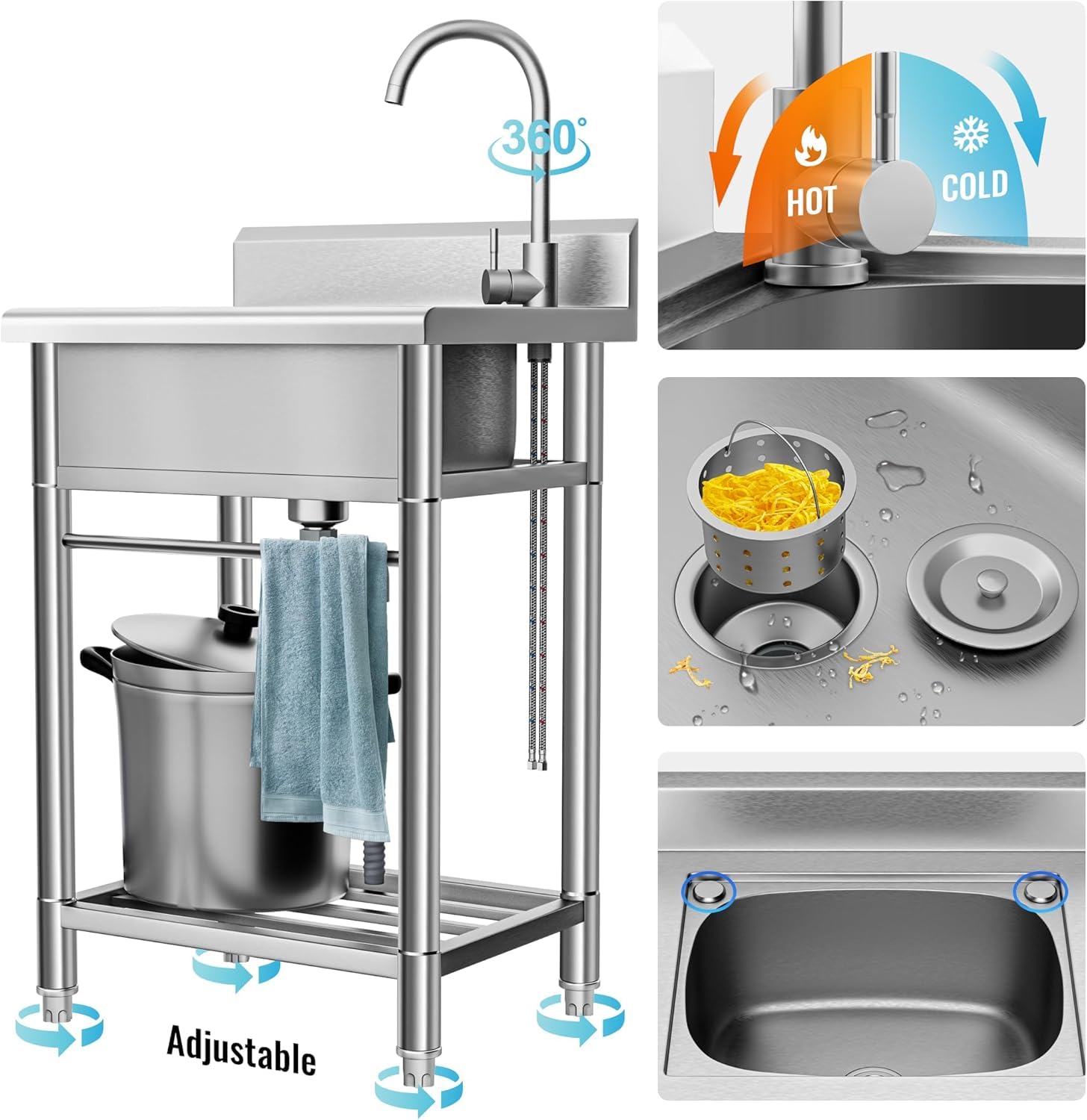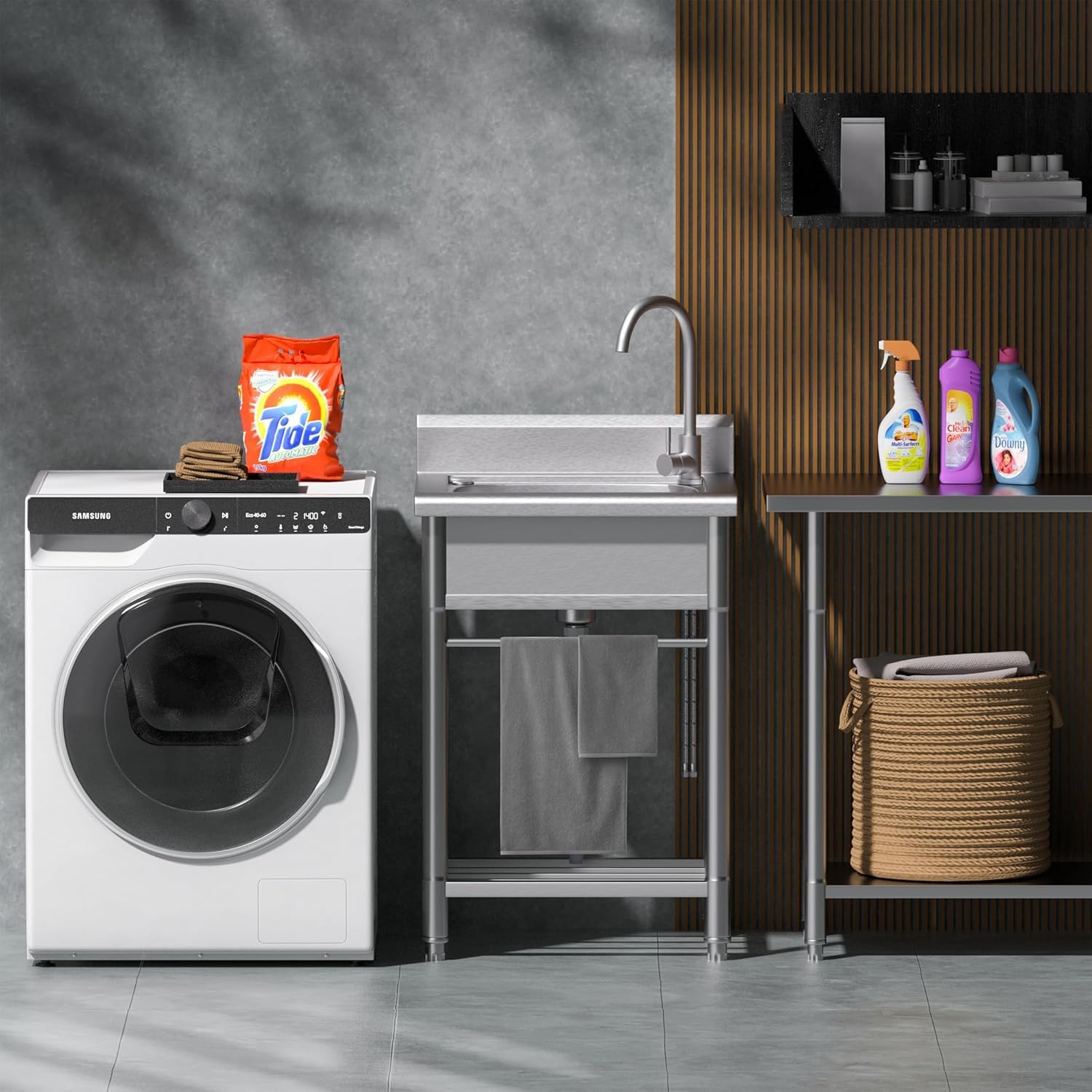 Free Standing Utility Sink: The installation is simple, no need any tools, and it can be used directly after assembly. Widely used in kitchen, bathroom, farm house, backyard, garage, laundry room, shop, indoor and outdoor