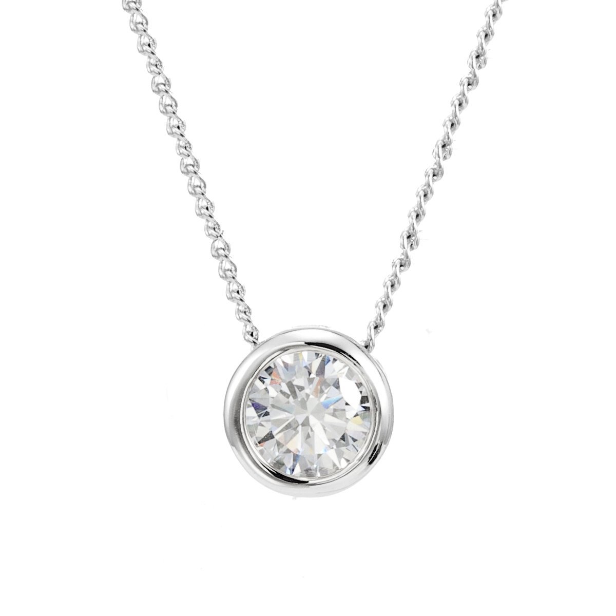 Timeless Design: Classic solitaire pendant necklace featuring a brilliant round-cut stone, designed to add timeless elegance to any outfit.