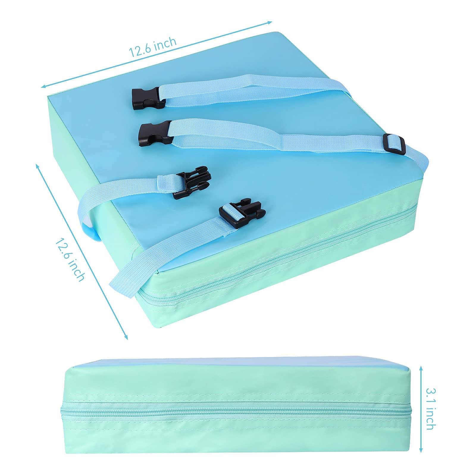 SUITABLE SIZE: With dimensions of 12.6 x12.6x3.15 inches, our booster seat for toddler fits most dining chairs. The extended length of the bottom seat belt ensures a secure fit on the dining chair. The height of 3.1 inch is suitable for 6 month-72 month child reaching the table to have a good time with family