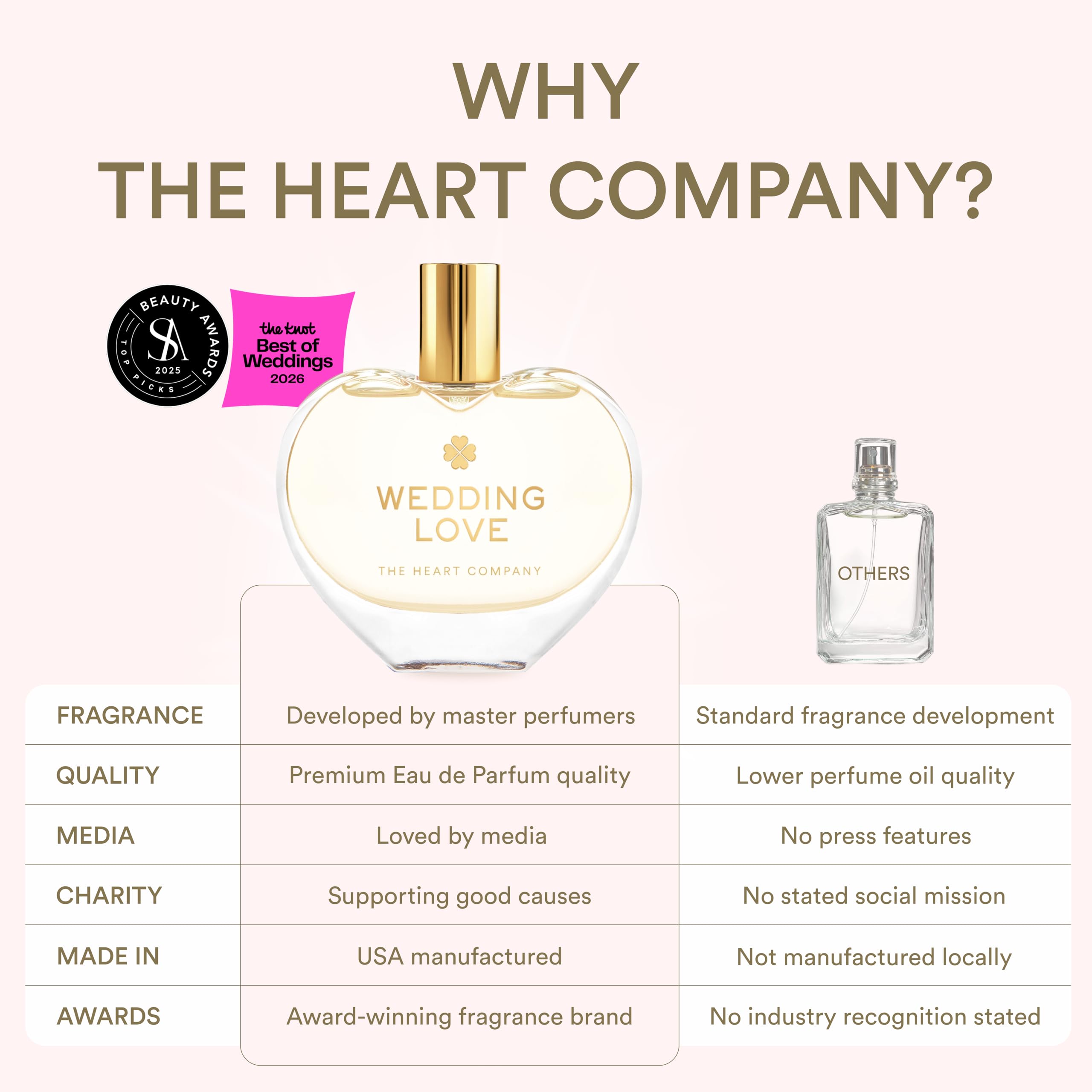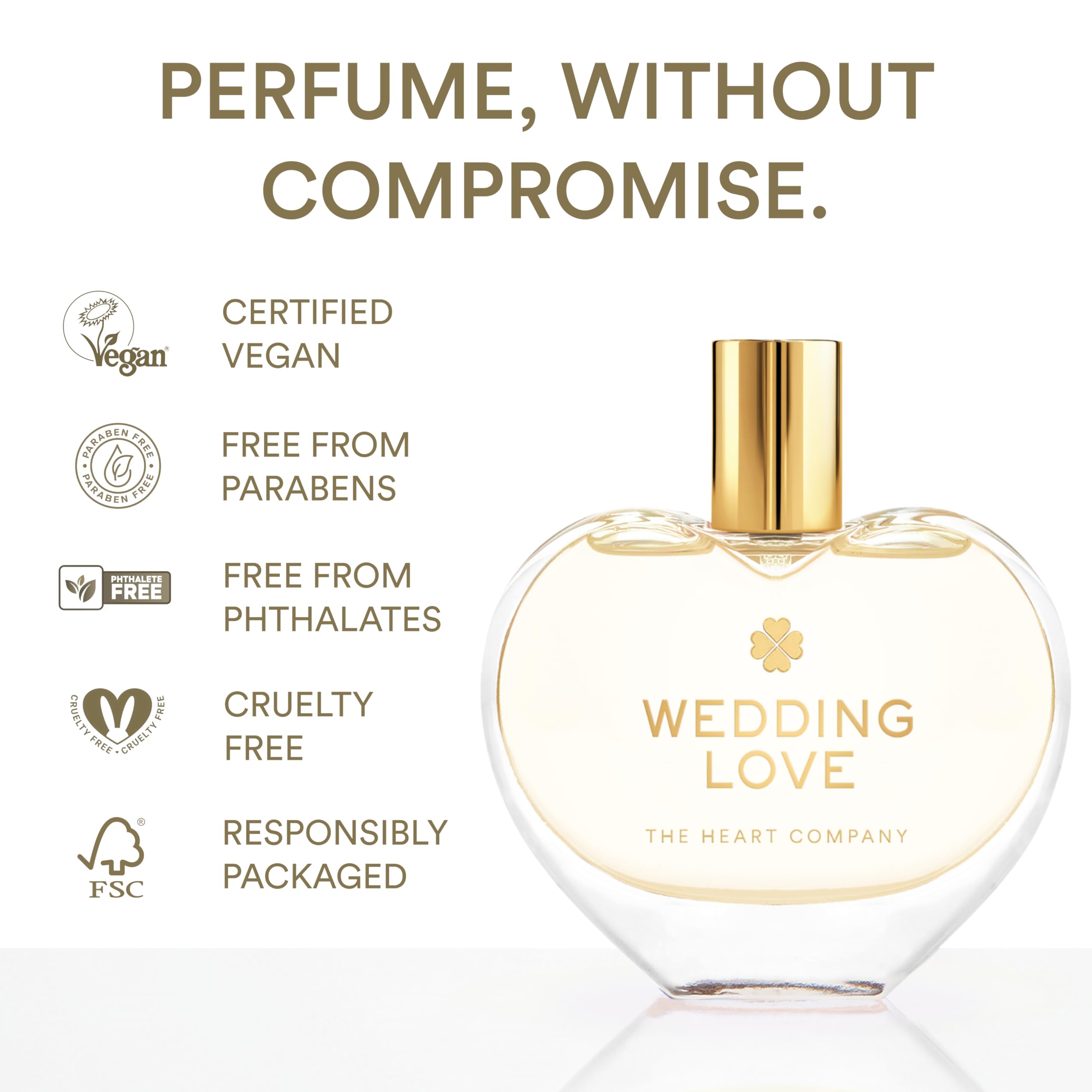 Heart shaped perfume bottle: The Eau de Parfum comes in a heart shaped elegant glass bottle. The design looks beautiful in any wedding decor and will create a unique bridal atmosphere. The heart bottle spreads love all around. It is a true "I love you" perfume that'll make your wedding day extra special.