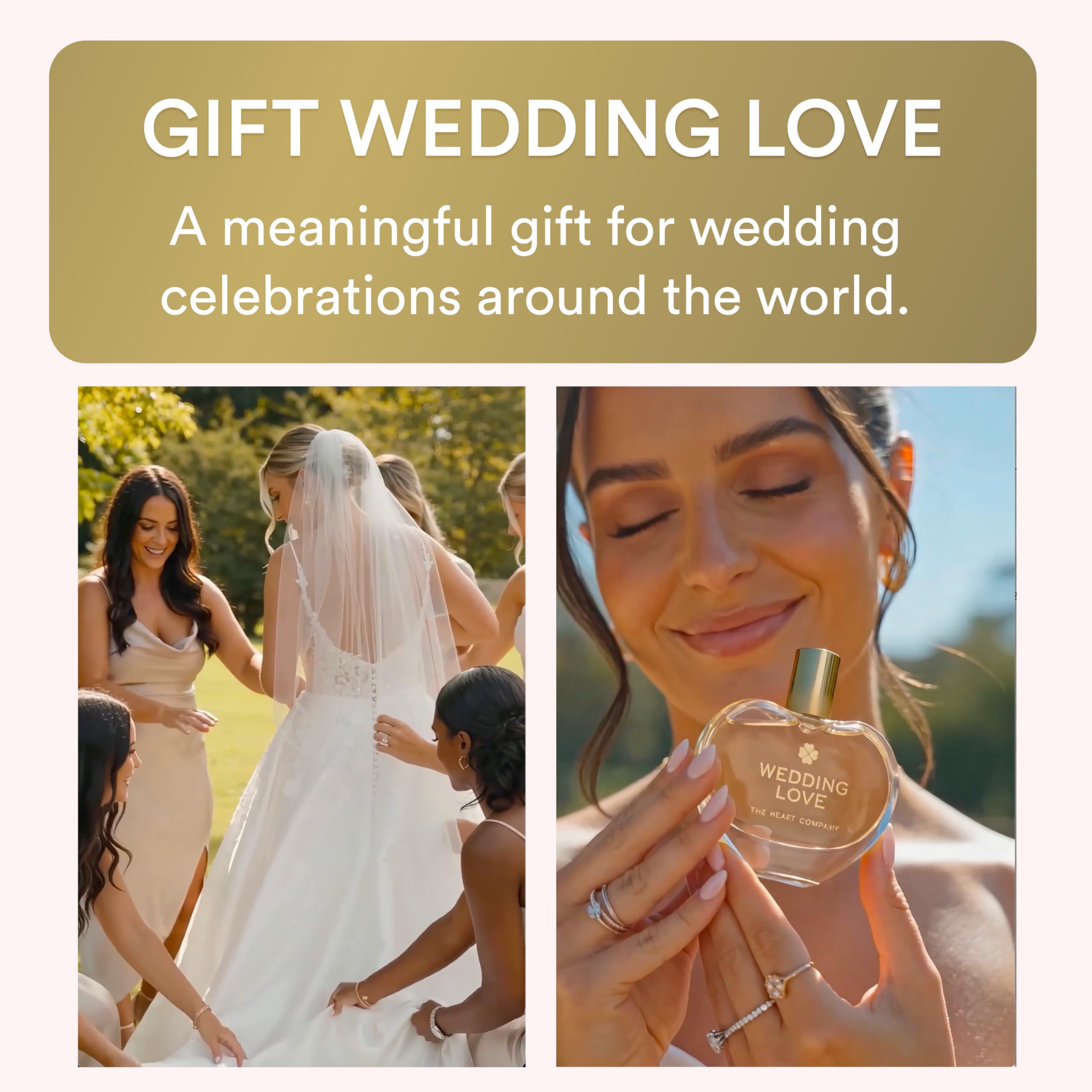 A wedding perfume that sparks love: Love begins with the scent. This Special Wedding Edition by The Heart Company was created to scent your wedding. The unique soft perfume spreads love and romance. It's also a lovely gift for your bridesmaids and wedding guests. With this perfume you'll crown your wedding and create a unique bridal atmosphere. It’ll remind you of all things wedding, love and forever-ness. Love is the most powerful force on earth.