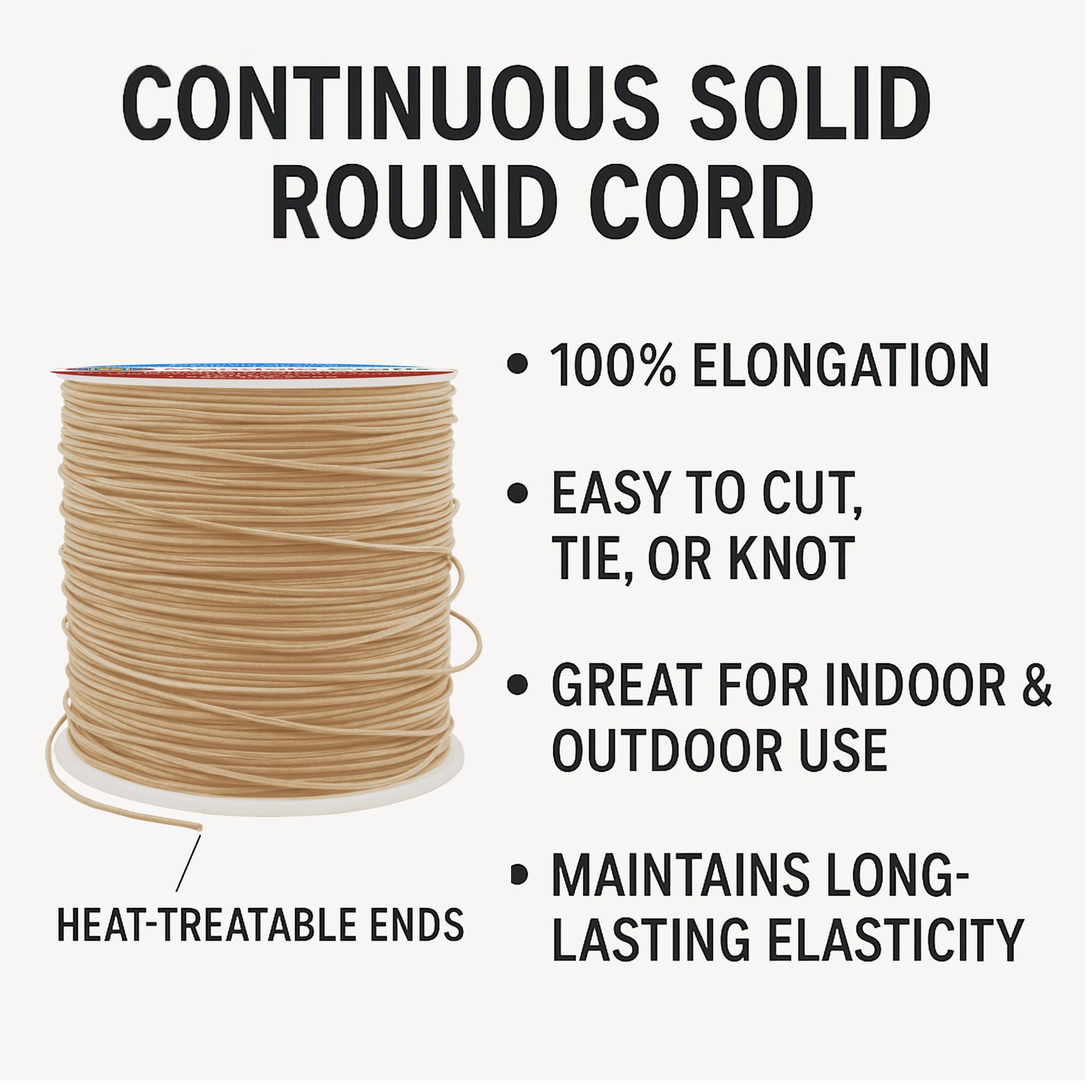 Tan Round Elastic Cording: The soft & flexible thin elastic cord made from nylon & rubber is colorfast, washable, & dryable. As strong as rubber string, the elastic rope cord serves as durable stretchy sewing string and elastic craft string.