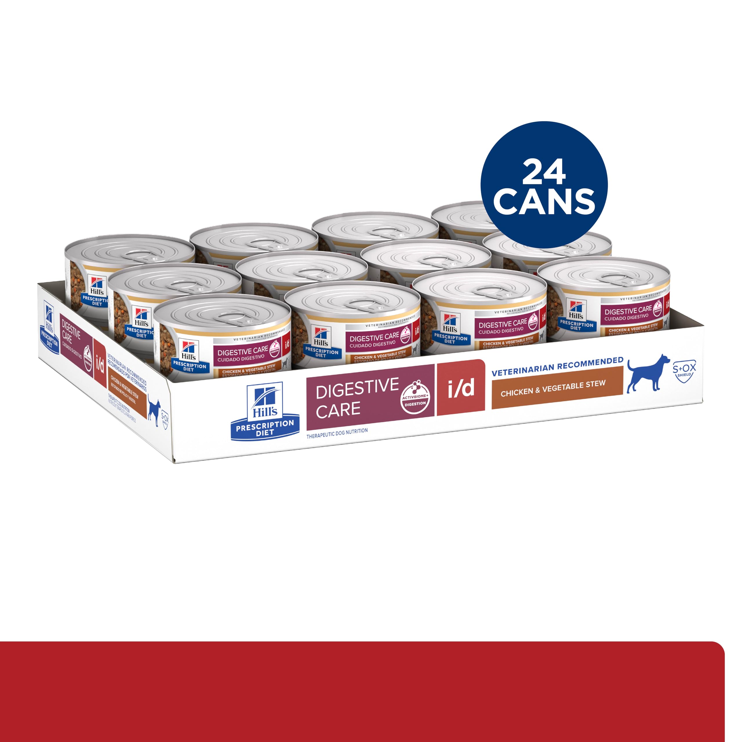 Hill’s Prescription Diet i/d Digestive Care Wet Adult Dog Food is a highly digestible, great-tasting clinical nutrition specially designed to help support digestive health and manage digestive upsets in adult dogs. Its high digestibility supports easy nutrient absorption, and it meets the nutritional needs of adult dogs.Formulated with Hill’s breakthrough bActivBiome+ Digestion a proprietary blend of prebiotic fibers, which is clinically shown to rapidly activate the gut microbiome to support digestive health and overall well-being.It contains added electrolytes, B vitamins, and omega-3 and -6 fatty acids. Additionally, it includes clinically proven antioxidants to help support a healthy immune system.Made in the USA with global ingredients you can trust. Developed by Hill’s nutritionists and veterinarians. Veterinarians can provide additional guidance on how Hill’s Prescription Diet products can be fed long-term to help support overall well-being.