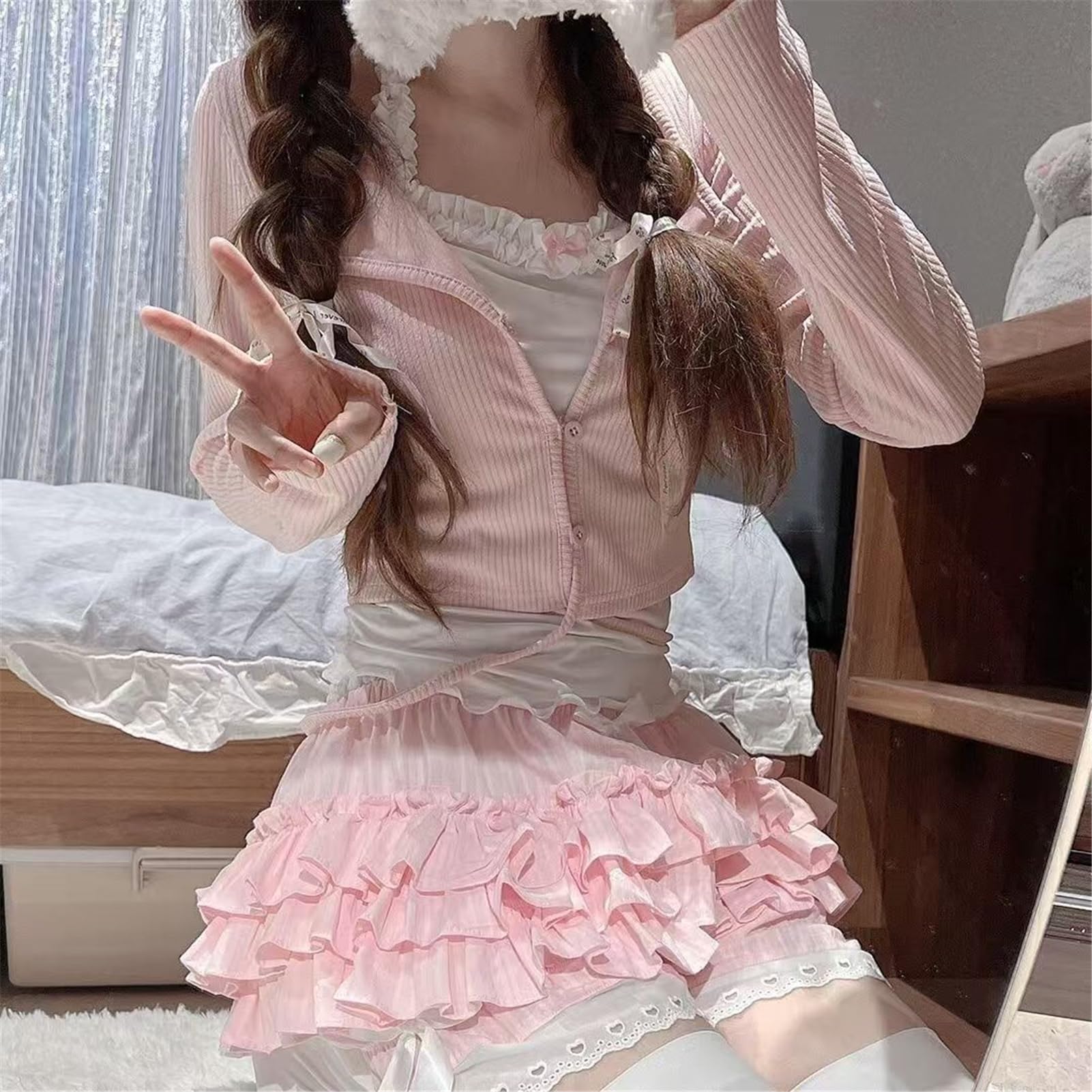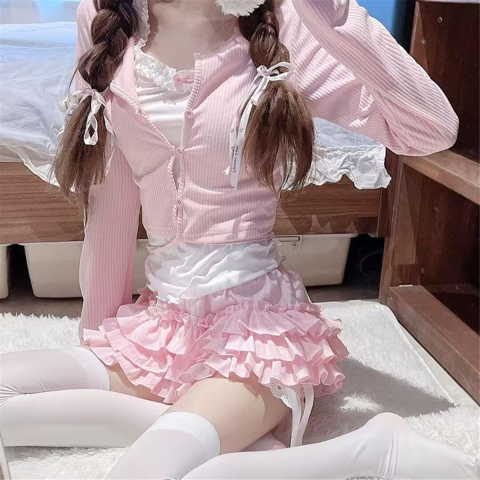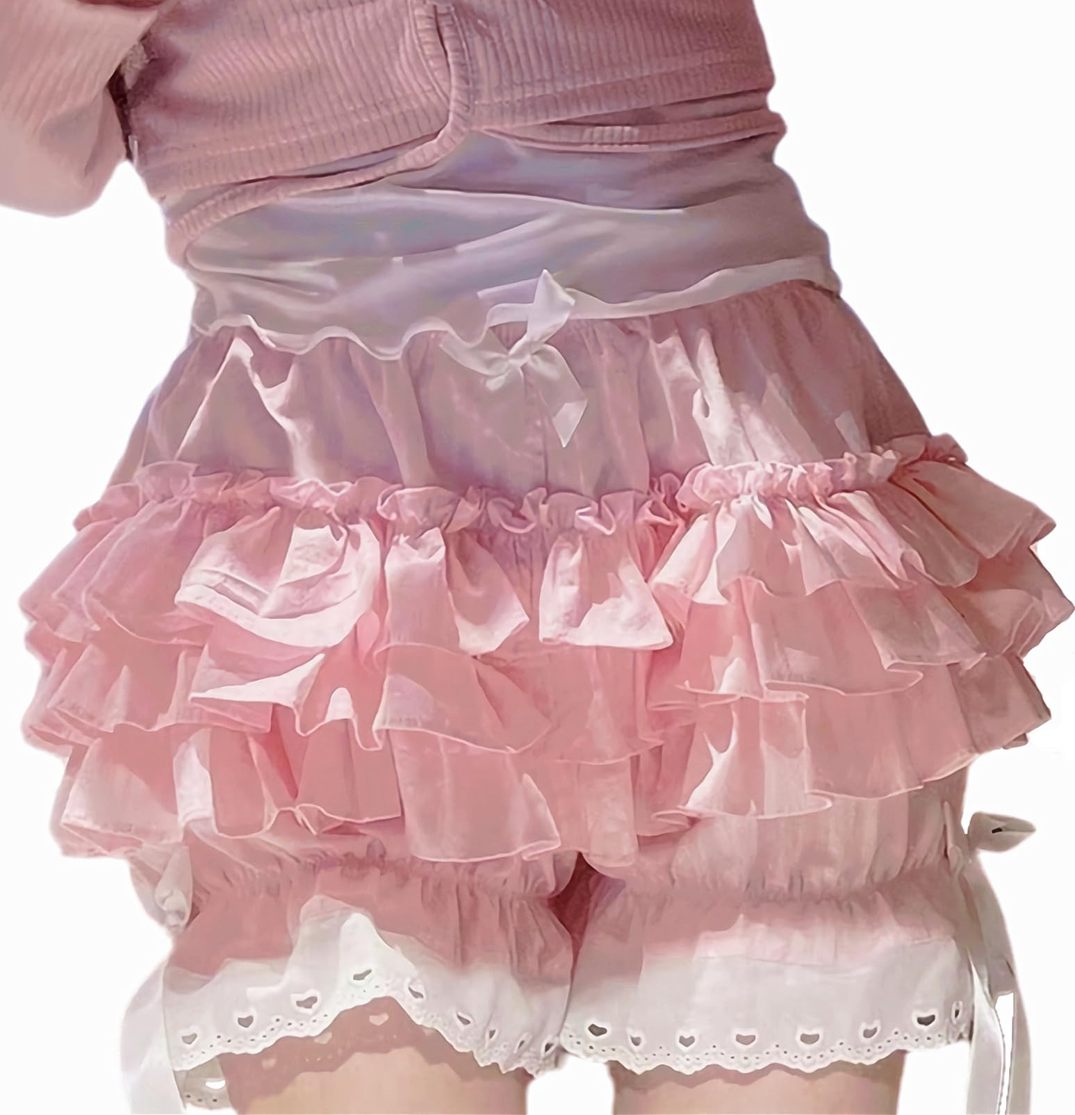 Kawaii design: Layered ruffle bow trim design, sweet cute, kawaii y2k bloomers, fairycore grunge.