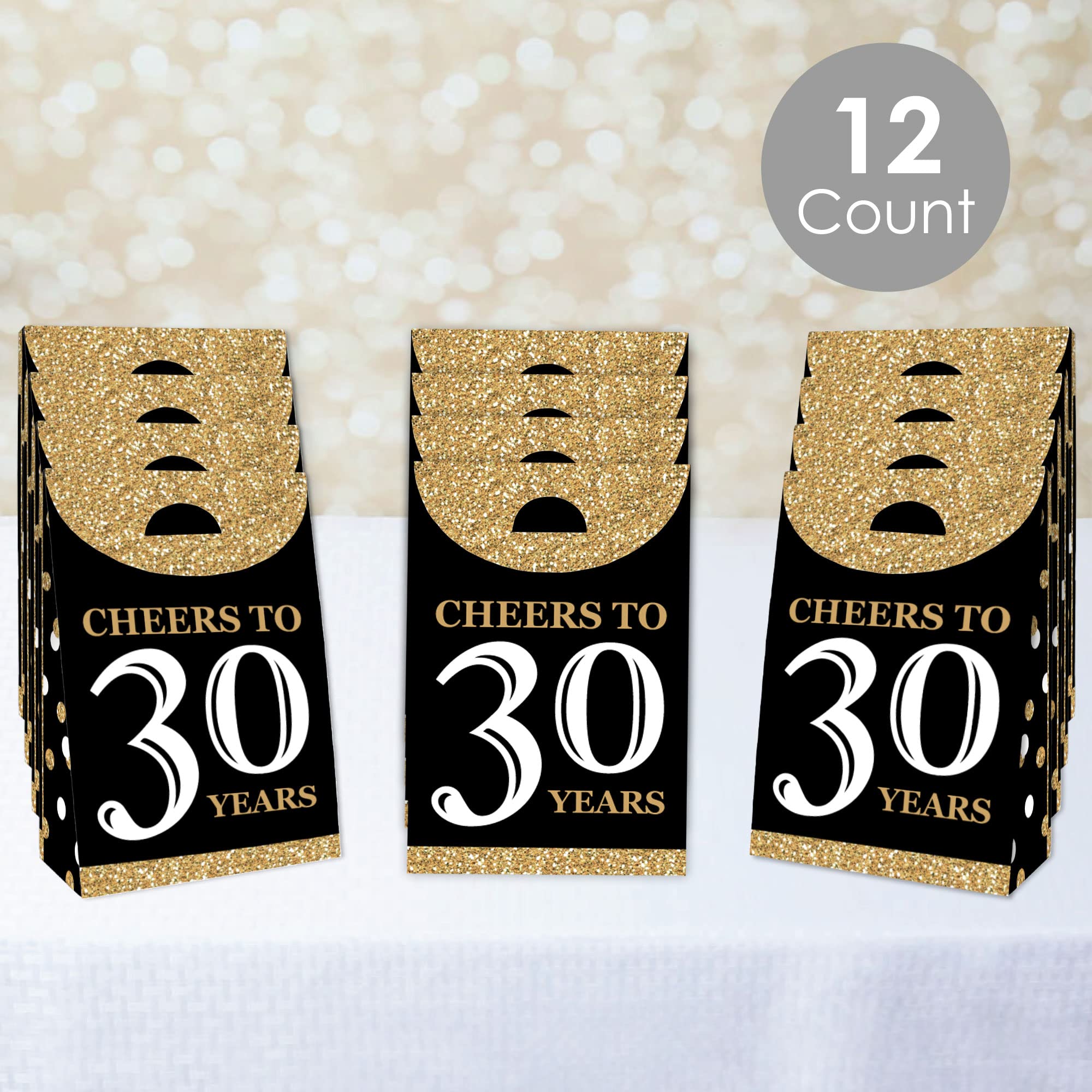Adult 30th Birthday - Gold Party Goodie Bag INCLUDES 12 gift favor bags that are perfect for a birthday party. Each bag SIZE measures 4.75” length x 2.5” wide x 7” tall. Party Goodie Bags are excellent for small gifts, treats, and other party favors.