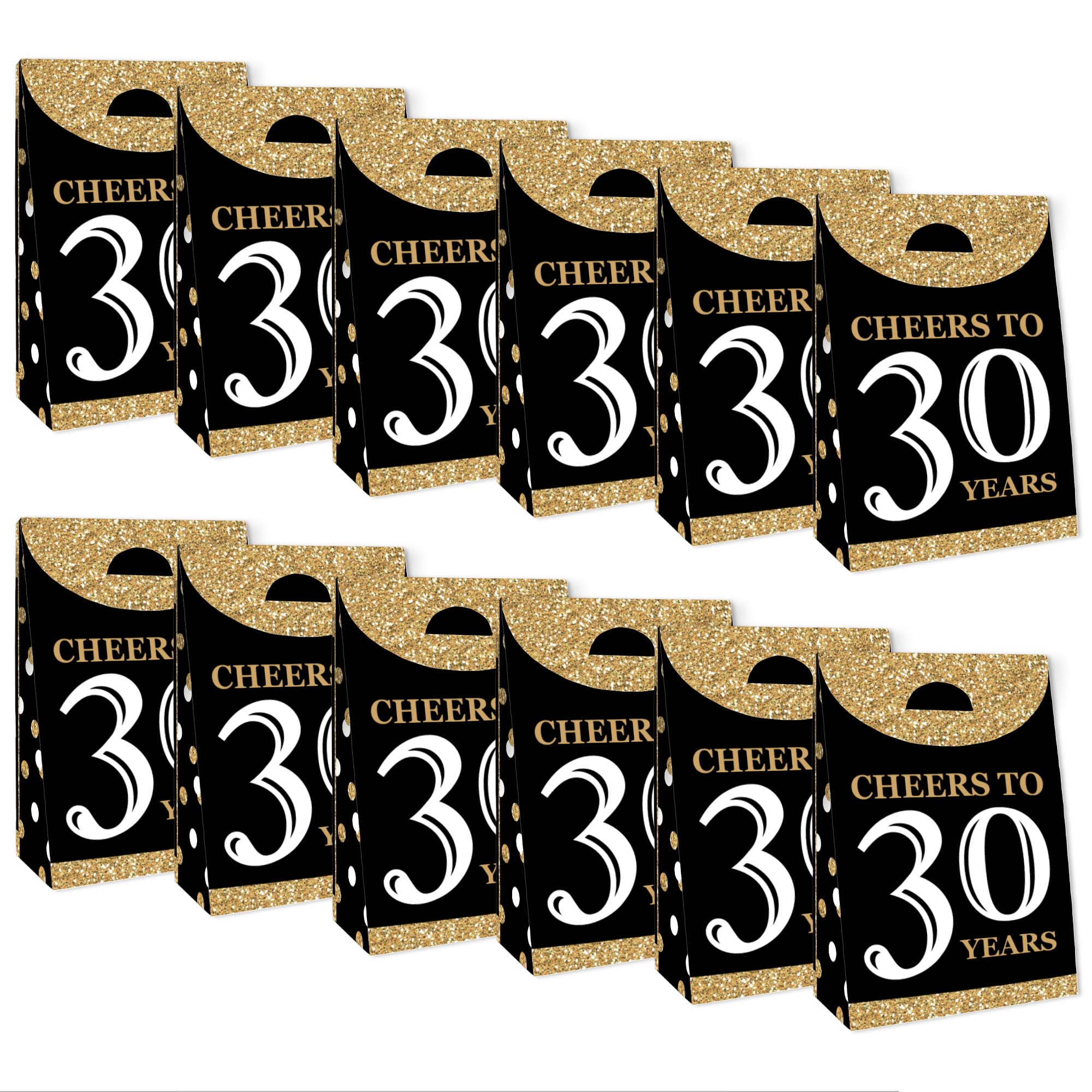 HIGH-QUALITY SUPPLY: Adult 30th Birthday - Gold Party Goodie Bags are professionally printed double-sided on heavy-duty cardstock paper with a photo-like shine. They are individually inspected and then carefully packaged by hand.
