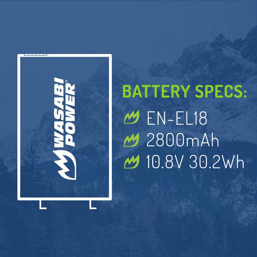 The Wasabi Power ENEL18 battery replaces the Nikon EN-EL18 battery pack. This battery features 2800mAh which provides a longer run-time between charges. It is made with Premium Grade-A cells to provide maximum battery life and also comes with a 3-year manufacturer warranty. Additionally, the Wasabi Power ENEL18 is completely compatible with all Nikon original equipment including the charger and camera. Compatible with the following models: Nikon D4 Nikon D4S Nikon D5 NIkon D6 Nikon D500 (with adapters/grips) Nikon D850 (with adapters/grips)
