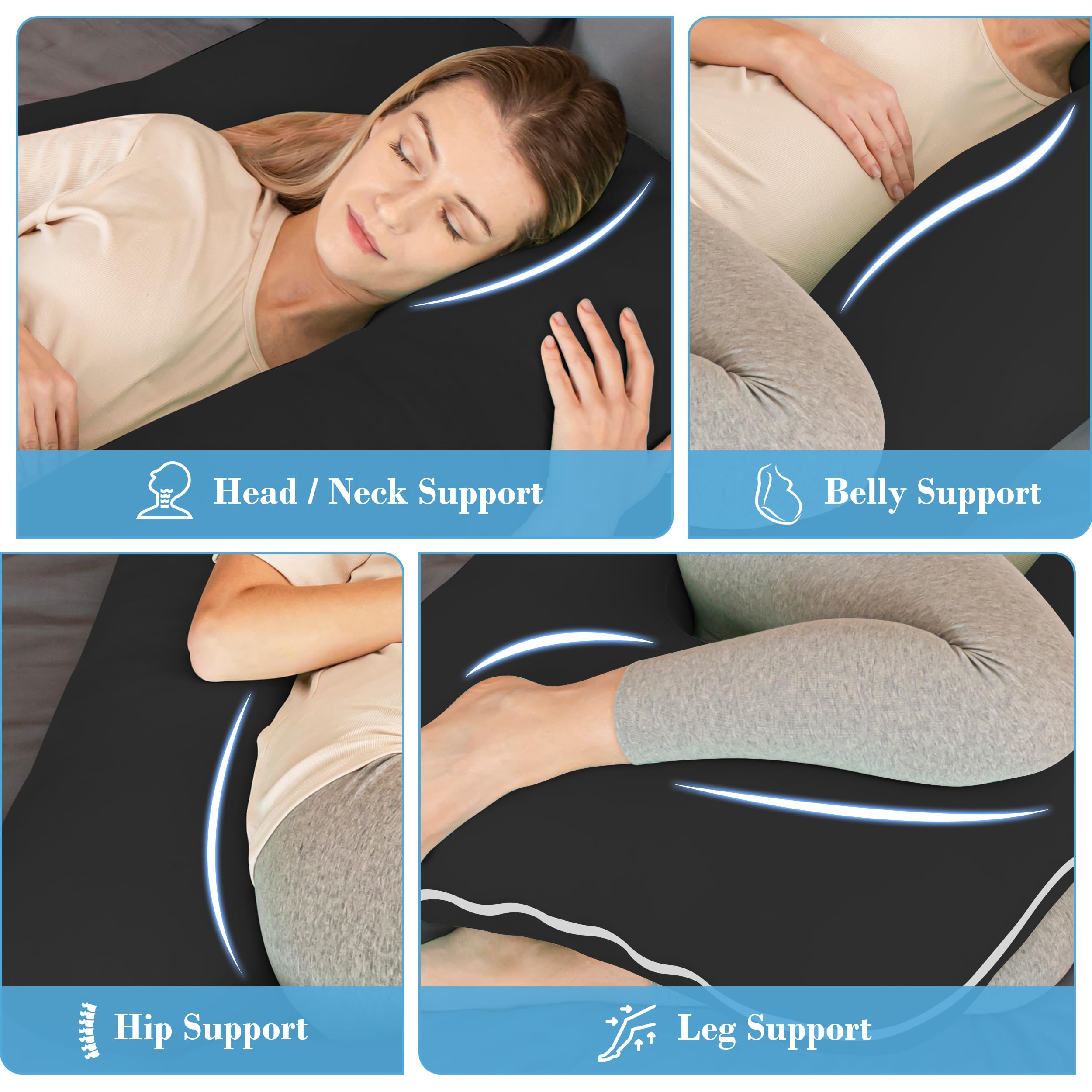 Perfect Pregnancy Pillow - Designed for both side and back sleepers, this body pillow is a versatile addition to any sleeping arrangement. It offers relief from a range of discomforts including pregnancy-related issues, sciatica, fibromyalgia, gastric reflux, back pain, ankle pain, and more. A thoughtful and practical gift suitable for anyone seeking blissful, pain-free slumber.