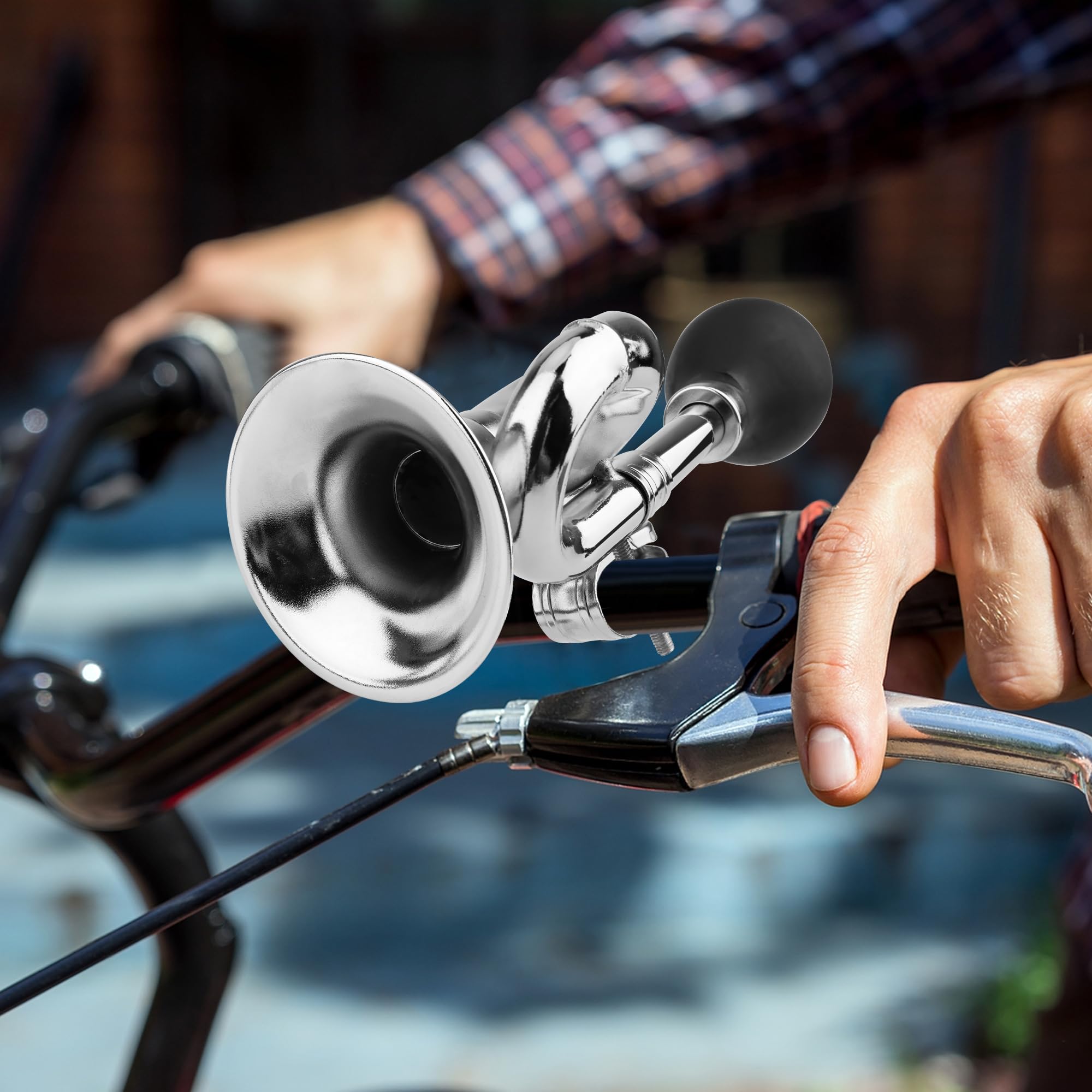 𝐌𝐚𝐭𝐞𝐫𝐢𝐚𝐥: The bike horn is made of polished stainless steel, which is non-fading, durable, and weather-resistant. It does not readily corrode or rust, and the rubber ball is soft for use and prevents scratching.