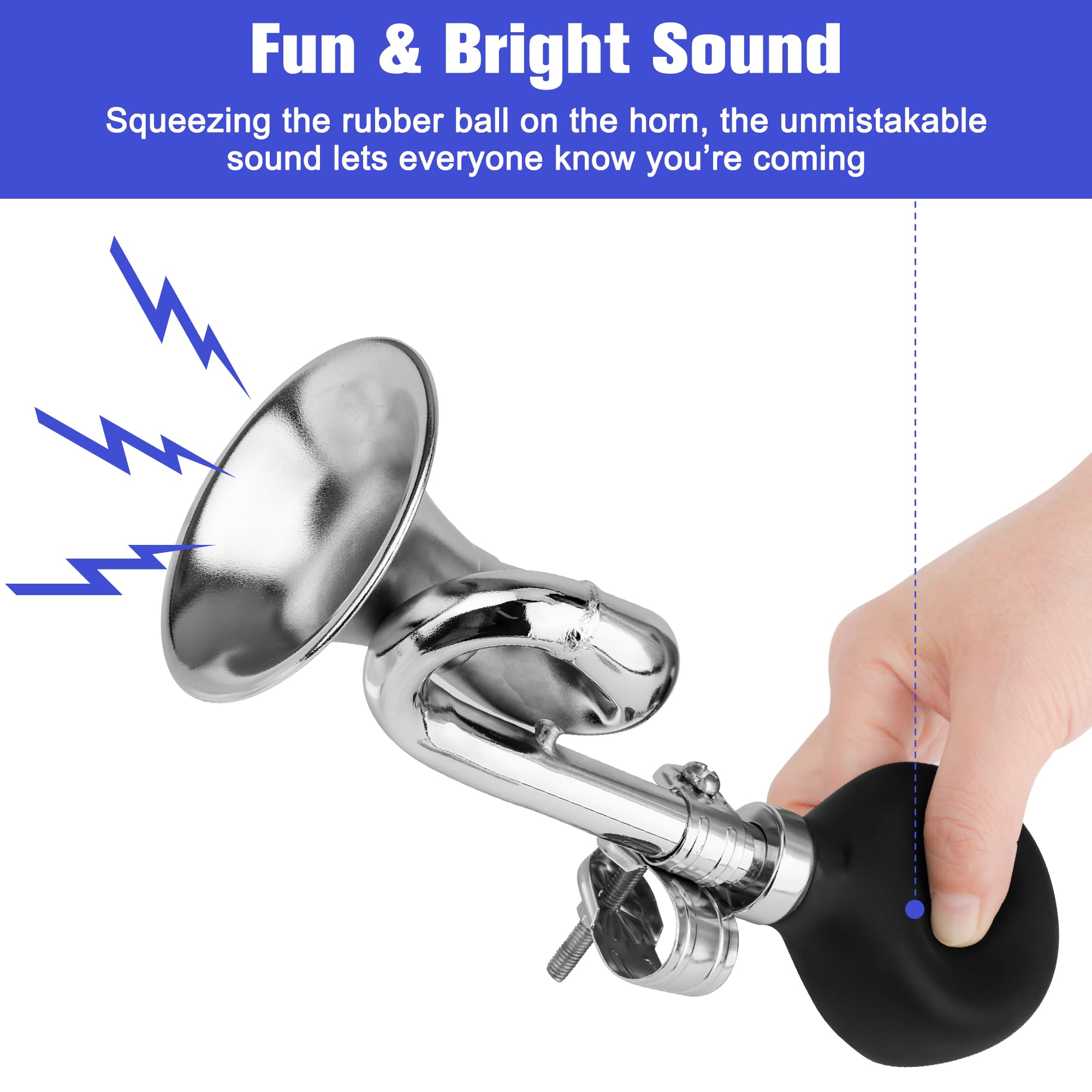 𝐋𝐨𝐮𝐝 𝐚𝐧𝐝 𝐅𝐮𝐧 𝐇𝐨𝐫𝐧: Clear the way with a distinctive honk by squeezing the rubber ball on the horn, effectively improving security. The sound is crisp yet harmonious, avoiding harshness while ensuring audibility in busy environments.