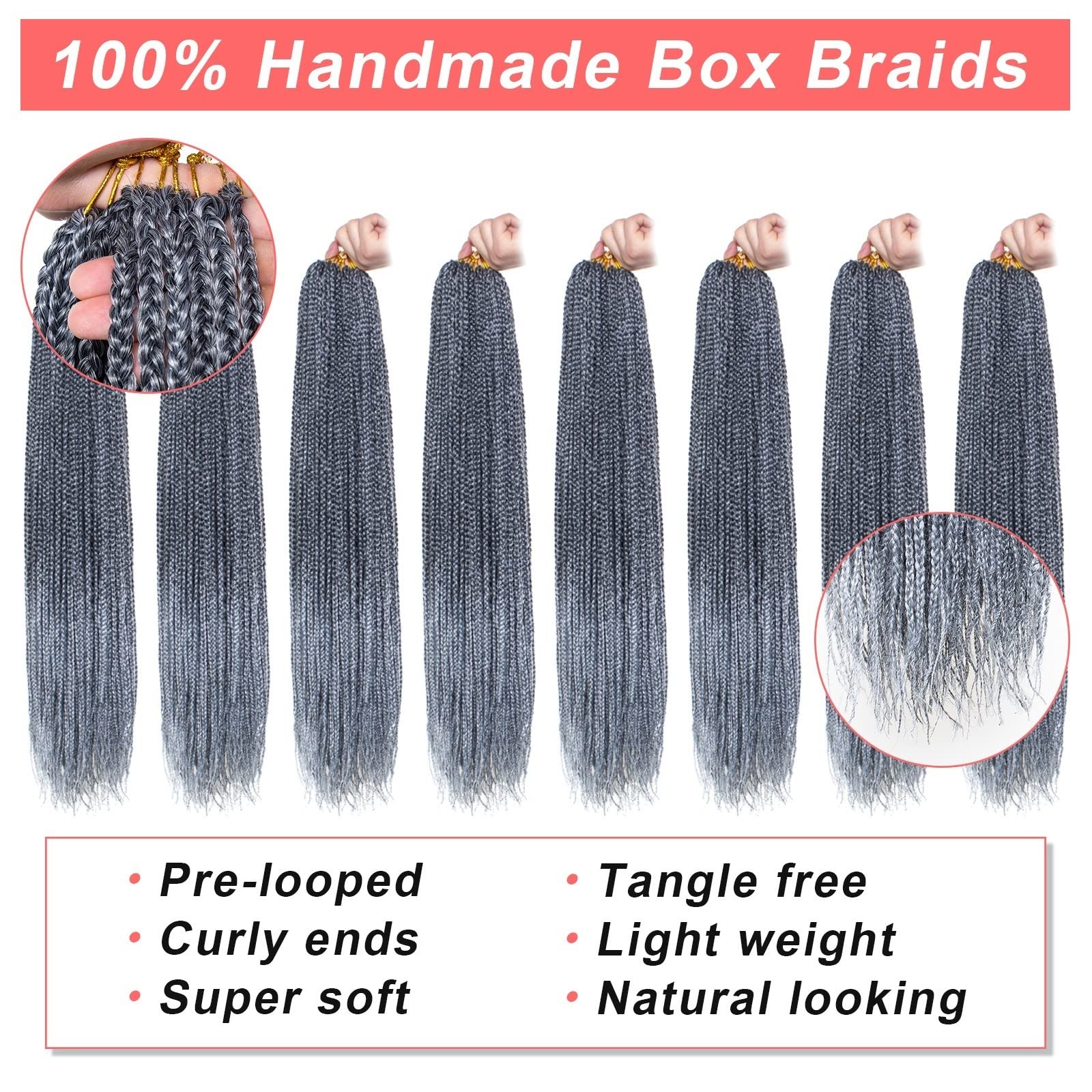 Features: Box braids crochet hair is 100% handmade, light weight, easy to install, because they have been pre-looped in advance, especially for beginners, it can save more time to make hairstyles.