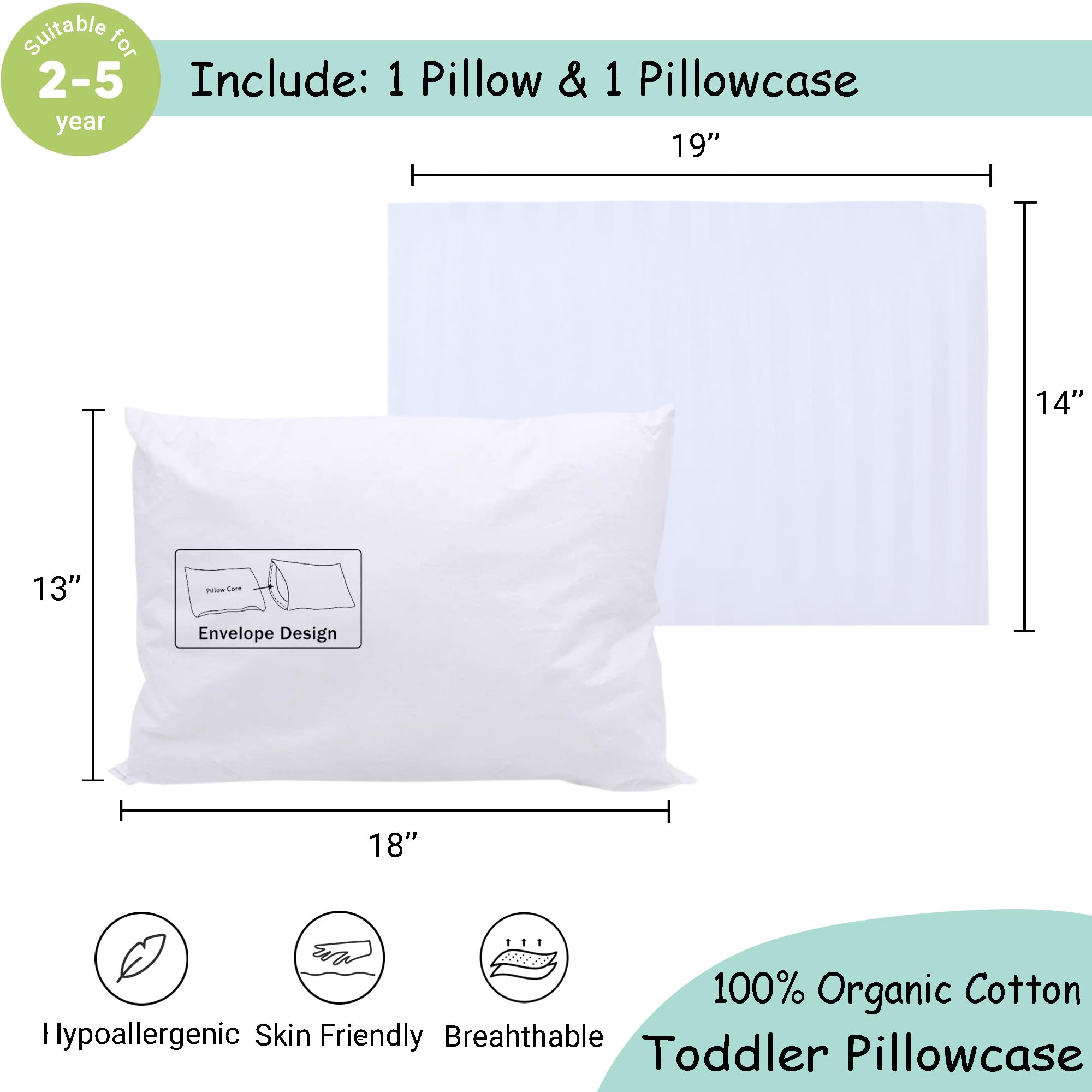 PACKAGE INCLUDE: 1 toddler pillow 13x18 and 1 toddler pillowcase 14x19, After opening the package, please wash and dry the pillow to regain its fluffiness