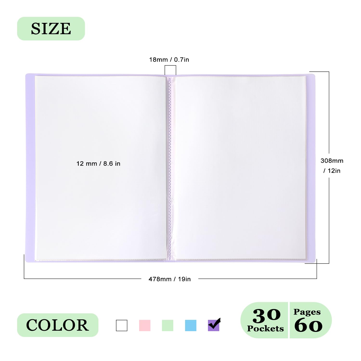 8.5x11 Presentation Book: Include 1 pack portfolio display book with 30 top-loading plastic sleeves, It fits 8.5 x 11" letter size or smaller.
